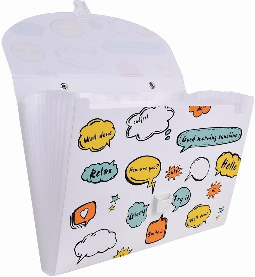 Teczka A4 z Uchwytem i Radosnym Motywem Odkryj funkcjonalną teczkę, która z pewnością ułatwi Ci organizację dokumentów. Dostępna w białym kolorze z wesołym printem, oferuje aż 13 przegródek i 12 zakładek, dzięki czemu Twoje papiery zawsze będą na swoim miejscu. Doskonały przewodnik dla uporządkowanej przestrzeni biurowej, teczka ta jest idealna dla osób, które cenią sobie porządek w formacie A4. EAN: 6972943014076