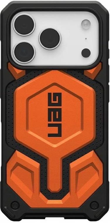 Urban Armor Gear Monarch Pro do MagSafe Do Apple iPhone 17 Pro Wersja kolorystyczna: Orange (pomarańczowa z czarnymi elementami) Rodzaj ochrony: mocne, wytrzymałe i kompaktowe Materiał: Poliwęglan i termoplastyczny poliuretan, włókno węglowe Smukła i lekka budowa Zintegrowane osłony na przyciski Najmocniejsze etui marki Urban Armor Gear! Kompatybilność z technologią MagSafe i ładowaniem bezprzewodowym Lekko podwyższone ranty chroniące ekran i kamerę na płaskich powierzchniach Wewnętrzna struktura plastrów miodu Kod producenta: 114513119797 Kod produktu: 840283925481 Etui kompatybilne ze szkłami o wymiarach mniejszych niż (dług. x szer.): 14,73 x 6,93 cm Najmocniejsze etui UAG Solidny pokrowiec od marki Urban Armor Gear z serii Monarch Pro do MagSafe. Użytkujesz swój telefon, jakby jutra miało nie być? Wykonane z połączenia TPU oraz poliwęglanu o wewnętrznej strukturze plastra miodu. Etui pomoże wydłużyć życie Twojego smartfona! Ręcznie układane, kute wióry węglowe zachwycają niepowtarzalną fakturą, a eleganckie, miedziane detale dodają całości szlachetnego charakteru. Subtelne, pomarańczowe akcenty wprowadzają odrobinę wyrazistości – to styl, który nie pozostanie niezauważony. Za estetyką kryje się zaawansowana technologia – 5-warstwowa konstrukcja zapewnia doskonałą ochronę, jednocześnie wspierając bezprzewodowe ładowanie i pełną kompatybilność z MagSafe. Pancerne i wytrzymałe Etui spełnia wojskowe standardy odporności Military Grade. Pokrowiec składa się z 5 warstw Twarda powłoka zewnętrzna skutecznie pochłaniająca energię uderzenia Superwytrzymałe włókno węglowe zapewniające doskonałą ochronę Sztywna płytka z poliwęglanu wzmacniająca strukturę całej obudowy Metalowe elementy – śruby zabezpieczające warstwy konstrukcyjne Odporna na uderzenia, elastyczna guma zwiększająca amortyzację Nie pogrubia urządzenia Obudowa mimo swoich pancernych właściwości nie nadaje zbyt dużego gabarytu urzadzeniu - przy czym jest doskonale do niego dopasowana. Podwyższone krawędzie chronią kamerę i ekran przed zarysowaniami na płaskiej powierzchni. Na pomoc przed zarysowaniami Bez obaw przesuwaj swój telefon po blacie i innych powierzchniach - case pokryty jest matową powłoką odporną na ścieranie i odciski palców. Wbudowane osłony przycisków ochronią smartfon przed kurzem i pyłem! Kompatybilność z technologią MagSafe Etui nie zakłóca działania ładowania indukcyjnego. Dodatkowo posiada wbudowany specjalny pierścień magnetyczny, dzięki któremu zachowuje kompatybilność ze wszelkimi akcesoriami z serii MagSafe. *Brak ładowarki MagSafe w zestawie. Nie ślizga się Ergonomicznie wyprofilowana krawędź z antypoślizgowym wykończeniem sprawia, że smartfon leży w dłoni jak przyklejony – nawet gdy masz na sobie rękawiczki, pada deszcz albo jesteś w ruchu. Dzięki wbudowanym punktom mocowania smyczy możesz zabrać go ze sobą wszędzie: na górski szlak, rowerowy wypad czy wspinaczkową przygodę. Twój telefon zawsze będzie tam, gdzie Ty – gotowy na każdą akcję. **Brak smyczy w komplecie.