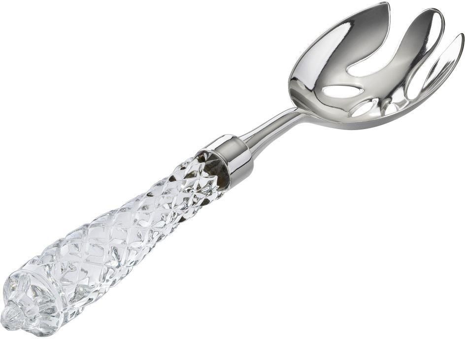 Widelec do sałatki platerowany 27 cm CASANDRA Casandra to kolekcja platerowanych sztućców serwingowych z uchwytami ze szkła kryształowego. Sztućce są bardzo eleganckie i efektowne. Szkło pięknie błyszczy. Warstwa srebra pokryta jest specjalną warstwą ochronną, która zabezpiecza platerowaną część przed śniedzeniem. Sztućce sprzedawane są pojedynczo. Do każdego opakowania dołączona jest instrukcja użytkowania.