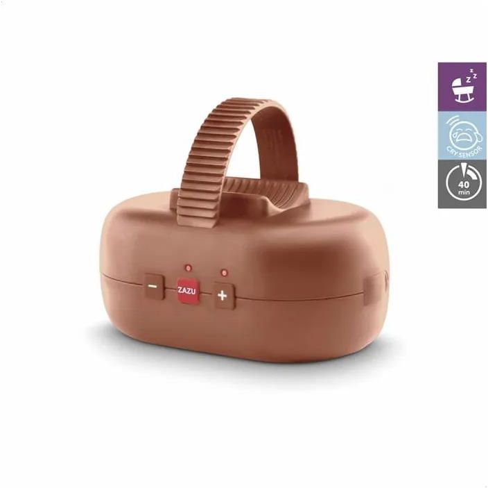 Automatyczny bujak do wózka ROBBY Terracota, Zazu ROBBY to automatyczny bujak do wózka, który pomaga rodzicom przejmując delikatne kołysanie wózka. Rodzic może napić się kawy, poćwiczyć lub wykonać dowolną pracę, podczas gdy niemowlę cieszy się spokojną drzemką. Naciśnij włącznik, a Robby będzie delikatnie bujał wózkiem przez 40 minut. Dostosuj prędkość bujania do potrzeb snu Twojego malucha. Czujnik płaczu będzie czuwał nad dzieckiem i aktywuje urządzenie ponownie, gdy maluch zacznie płakać. Bujaka do wózka Robby możesz używać zarówno w pomieszczeniach, jak i na zewnątrz. Posiada on poziom wodoodporności IPX1. Można go używać przy lekkim deszczu, ale należy go chronić podczas długotrwałych czy ulewnych opadów. Dzięki wygodnemu paskowi z klamrą bujak Robby z łatwością przymocujemy do uchwytu wózka lub spacerówki. Bateria bujaka do wózka marki ZAZU starcza na 8 godzin pracy. Możesz ją doładować. Kabel USB dołączony jest do urządzenia. Specyfikacja bujak do wózka Robby to pomocna dłoń przy kołysaniu dziecka do snu, ma regulowaną prędkość bujania, automatyczne wyłączanie po 40 minutach bujania wózkiem, czujnik płaczu aktywuje urządzenie, gdy maluch zaczyna płakać, długa żywotność baterii – do 8 godzin wodoodporność przy lekkim deszczu (IPX1), system mocowania pasujący do większości wózków i spacerówek łatwe i wygodne mocowanie za pomocą regulowanego paska i klamry. Wymiary bujaka: 13 x 9,5 x 10,6 cm ZAZU kids to holenderska marka. Jej założyciele Nynke Bakker i Sven van der Veen, rodzice 3 małych dzieci, połączyli siły w 2013 roku i stworzyli linię produktów dla dzieci. Charakteryzują się one nowoczesnym wzornictwem, a towarzyszy im troska o dobry i zdrowy sen dzieci i ich rodziców, która jest nadrzędnym celem marki.