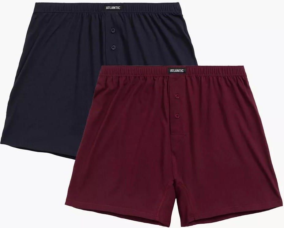 Bokserki o standardowej długości nogawek, uniwersalnej wysokości talii wykończonej miękką i nieuciskającą ciała gumą wewnętrzną, ozdobioną napisem Atlantic. Pakowane po 2 szt. Skład: 100% bawełna.