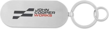 Brelok MINI John Cooper Works Brelok do kluczy MINI JCW z emaliowanym logiem wtłoczonym w płytkę ze szczotkowanej stali nierdzewnej. Zestaw zawiera klasyczny duży pierścień, do którego bez problemu przywiesisz domowe klucze oraz mniejsze kółko przewidziane i dopasowane do najnowszej odsłony pilotów …