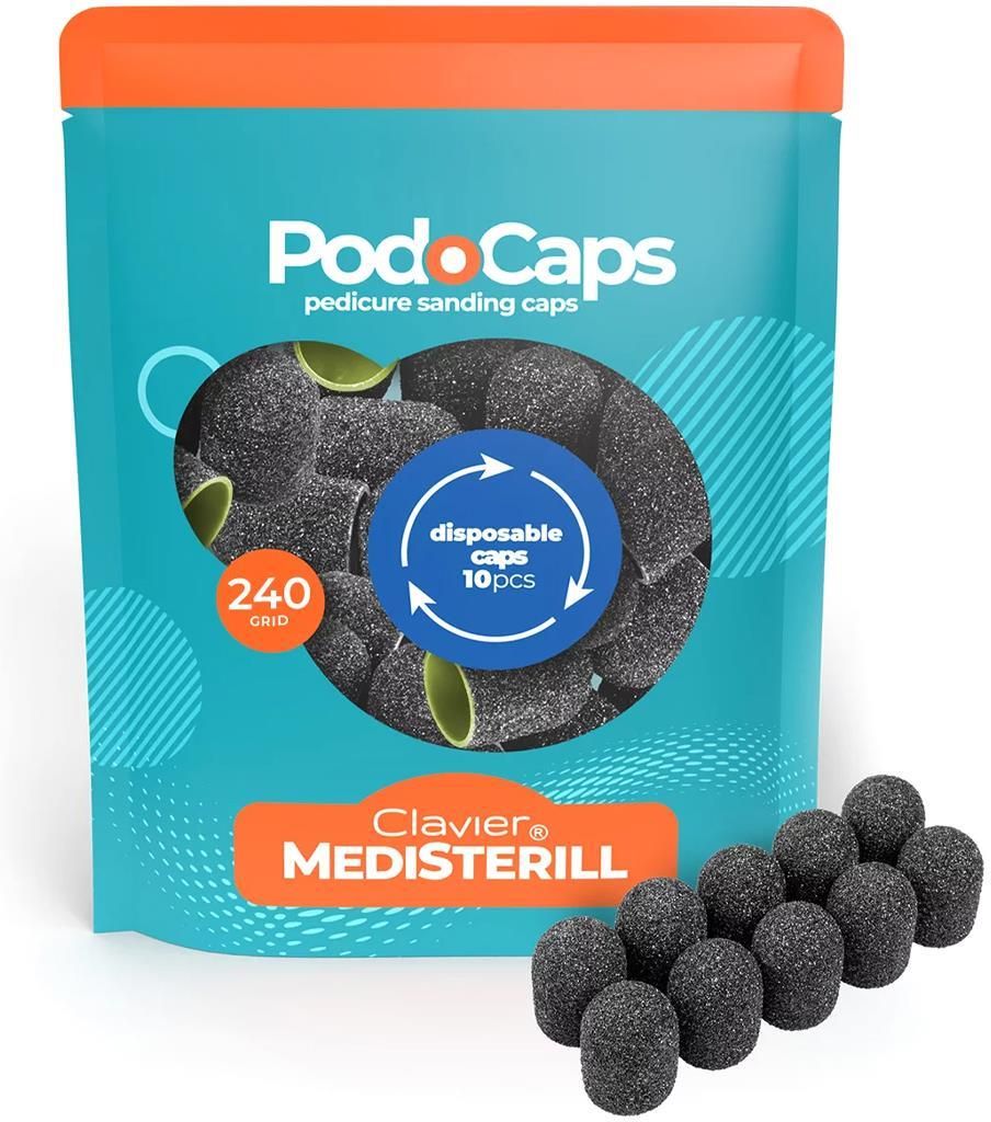 CLAVIER PODOCAPS KAPTURKI ŚCIERALNE 13mm 10szt. - #240 Kapturki ścierne do pedicure, to specjalne nakładki na końcówki urządzeń, takich jak frezy czy pilniki. Ich głównym celem jest zwiększenie higieny podczas zabiegów pedicure. Kapturki ścierne do pedicure MEDISTERILL usuwają zrogowaciały naskórek …