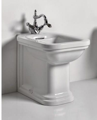• - Wykończenie: Złote - Wymiary: 55 x 37 cm - Z przelewem - Typ: Stojący - Liczba otworów: 1 • Bidet w kolorze złotym od marki Kerasan z serii Waldorf. Wymiary produktu wynoszą 55 x 37 cm. Bidet z przelewem oraz jednym otworem na baterię. Produkt przeznaczony jest do montażu wiszącego. Solidne …