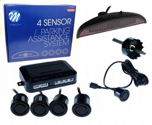 System wspomagania parkowania 4-sensorowy CZARNE z Wyświetlaczem. (sygnał dzwiękowy) - czujniki o średnicy fi 18mm - Zestaw CP14 wyróżnia się prostotą i wygodą użytkowania. Sensory ultradźwiękowe mierzą odległość od przeszkody, a następnie informacja przekazywana jest do niewielkiego wyświetlacza cyfrowego montowanego na desce rozdzielczej. Czujnik wskazuje kolorowymi liniami stronę, po której znajduje się obiekt oraz podaje dokładny dystans w cm. Dodatkowo buzzer (sygnał dźwiękowy) wbudowany w wyświetlacz informuje o przeszkodzie emitując narastający sygnał dźwiękowy. System uruchamia się automatycznie podczas cofania. Parametry techniczne Średnica sensorów 18 mm Monitorowana odległość od 2m do 0,3m Zasilanie 12V DC Pobór Mocy < 4W Częstotliwość 40 KHz Temperatura pracy urządzenia -30°C do +70 °C Błąd pomiaru +/- 5cm Dopuszczalny kąt nachylenia +/- 5° Zalety zestawu Możliwość bezpiecznego parkowania tyłem oraz jazdy na biegu wstecznym nawet w warunkach ograniczonej widoczności . Zestaw czujników działa jak sonar wysyłając fale ultradźwiękowe które odbijają się od przeszkód i wracają podając dokładna odległość przeszkody. Zasięg czujników to 3 metra. System uruchomi się automatycznie po wrzuceniu biegu wstecznego (zasilanie podłącza się do lamp wstecznych). Najnowsza wersja modułu. Małe wymiary. Zestaw zawiera 4 sensory w kolorze czarnym wyświetlacz z buzzer'em Centralka sterująca Okablowanie Wiertło z otwornicą Elementy mocujące Instrukcja obsługi w języku polskim Czujniki dostępne są w trzech wersjach kolorystycznych. Wszystkie czujniki parkowania znajdujące się w ofercie M-Tech charakteryzują się bardzo niską awaryjnością i prostym montażem, nie wymagającym wizyty w warsztacie samochodowym. Czujniki można lakierować pod kolor samochodu i nie wpływa to na ich funkcjonowanie. - Wszystkie czujniki, sensory z naszej oferty można lakierować - Wdrażany jest rebranding czujników! Producentem nadal jest M-Tech. Przy zakupie czujników istnieje prawdopodobieństwo, że otrzymacie Państwo te same czujniki w starym opakowaniu M-Tech.