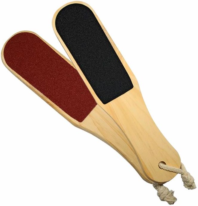 DWUSTRONNA TARKA DO PIĘT I STÓP Gradacja 120/180 Tarka wykonana z eleganckiego drewna - jest ergonomiczna i poręczna. Dobrej jakości części ścierne. Służy do usuwania zrogowaciałego naskórka z pięt. Lekka drewniana konstrukcja, a także dobrze wyprofilowana rączka sprawiają, że użytkowanie staje się bardziej komfortowe. Tarka dwustronna - posiada dwie powierzchnie cierne o różnej gradacji. Część brązowa - jest bardziej agresywna - służy do usuwania twardej skóry. Część czarna - jest o niższej gradacji służy do delikatnego wygładzania skóry stóp. Po wykonanym zabiegu nasza skóra jest zauważalnie gładsza i miększa w dotyku. Wymiary: 26x5,7cm Materiał: drewno