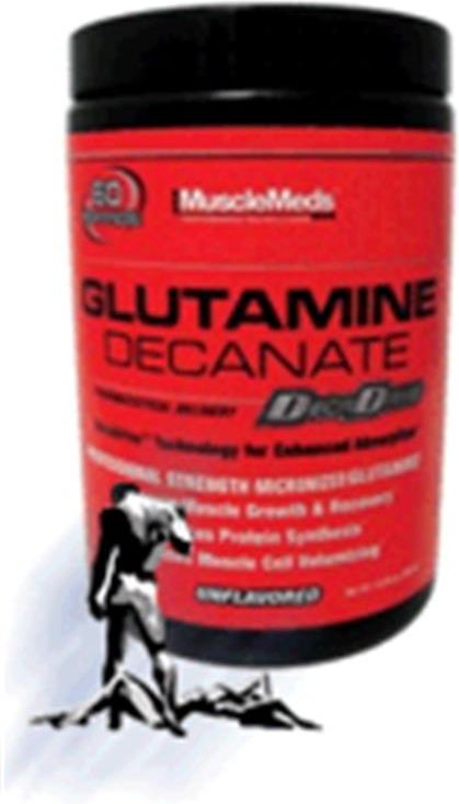 MuscleMeds Glutamine Decanate - seria DecaDrive Najwyższej jakości zmikronizowana L-glutamina w proszku. Oryginalna amerykańska odżywka, która zawiera w swym składzie 100% farmaceutycznej formy glutaminy w proszku o smaku naturalnym. Tania L-glutamina jest najważniejszym aminokwasem w ludzkim organizmie - ok. 60% tworzy pulę wolnych aminokwasów w mięśniach szkieletowych, a ponad 20% wchodzi w skład całkowitych aminokwasów pozostających w obiegu. Bardzo dobry suplement na szybką i efektywną regenerację - doskonała odżywka na masę mięśniową. Pharmaceutical Delivery - DecaDrive. DecaDriveTM Technology for Enhanced Absorption. Professional Strength Micronized L-glutamine. Increase Muscle Growth & Recovery. Enhances protein Synthesis Increases Muscle Cell Volumizing. Unflavored Mega przyrost siły i masy mięśniowej oraz super silne działanie antykataboliczne dzięki amerykańskiej odżywce sportowej - MuscleMeds Glutamine Decanate. L-glutamina zawarta w amerykańskim suplemencie Muscle Meds Glutamine Decanate jest aminokwasem o szczególnym znaczeniu dla kształtowania atletycznej sylwetki, ze względu na wyjątkowe działanie anaboliczne oraz antykataboliczne. Ten aminokwas pełni rolę magazynu azotu, co umożliwia syntezę nowych aminokwasów niezbędnych do budowy białek ustrojowych. Regularna suplementacja dobrą i stosunkowo tanią odżywką na masę MuscleMeds Glutamine Decanate przyczynia się do zwiększenia uwodnienia i objętości komórek mięśniowych oraz stymuluje syntezę białek i glikogenu. Ponadto sposób działania L-glutaminy w proszku z USA obejmuje także zwiększenie odporności organizmu. Nowe, wspomagające regenerację mięśni po ciężkich treningach siłowych suplementy diety i odżywki sportowe z USA. zobacz dawkowanie glutaminy w proszku MuscleMeds L-Glutamina Decanate DecaDrive wspomagającej budowę masy mięśniowej.[PDF, 117KB] zalety i korzyści stosowania i dawkowania silnej glutaminy w proszku MuscleMeds Glutamine Decanate: profesjonalna mocno zmikronizowana l-glutamina w proszku, niesamowity wzrost masy mięśniowej oraz lepsza i bardziej skuteczna regeneracja potreningowa, odżywa zwiększa i polepsza syntezę białek, suplement wspomaga układ odpornościowy. Sposób działania odżywki kulturystycznej MuscleMeds Glutamine Decanate - mega moc i skuteczność anaboliczna! zawarta w dobrym suplemencie diety dla kulturystów L-Glutamina marki MuscleMeds to wysokiej klasy aminokwas endogenny, który pełni kluczową rolę w wielu procesach metabolicznych. Jako suplement diety uzupełnia niedobory glutaminy powstałe w skutek intensywnego wysiłku fizycznego. Najlepsza glutamina w proszku MuscleMeds Glutamine Deconate skutecznie poprawia odporność organizmu, koncentrację oraz przyśpiesza procesy regeneracji. Regularna suplementacja glutaminą powoduje nasilenie syntezy białka, którego konsekwencją będzie wzrost masy mięśniowej. Mega silna odżywka anaboliczna dla kulturystów Glutamine Deconate przeznaczona jest dla osób aktywnych fizycznie pragnących zadbać o własną sylwetkę, a także profesjonalnych sportowców wszelkich dyscyplin. Kto powinien stosować glutaminę w proszku MuscleMeds Glutamine Decanatea Doskonała odżywka dla każdego sportowca MuscleMeds Glutamine Decanate przyspiesza procesy regeneracji, podwyższa odporność organizmu oraz poprawia zdolność koncentracji i szybkość reakcji. Ten idealny suplement dla każdej aktywnej osoby odgrywa kluczową rolę w zapobieganiu stanom przemęczenia (łagodzi jego objawy) i przetrenowania - obniża poziom kwasu mlekowego, dlatego też można powiedzieć, że MuscleMeds Glutamine Decanate to produkt uniwersalny - przeznaczony dla osób uprawiających różne dyscypliny sportowe, a przede wszystkim sporty siłowe (zapasy, boks/kick-boxing, kulturystyka, itp.) i wytrzymałościowo-siłowe (kolarstwo, koszykówka, piłka nożna, wioślarstwo, biegi długody