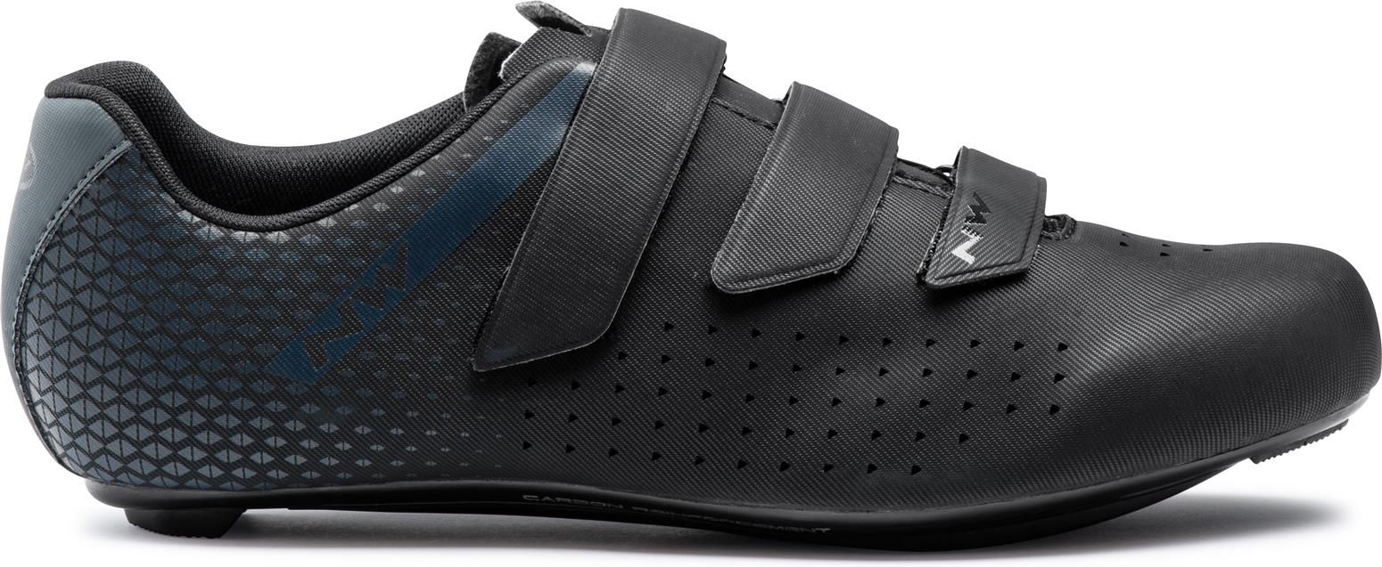 Northwave Core 2 to buty zaprojektowane specjalnie do jazdy szosowej. Zostały wykonane z wysokiej jakości materiałów, dzięki czemu są trwałe i wygodne. Dobrze sprawdzą się przy intensywnych treningach. Zapinane są na trzy paski z rzepami, które zapewniają dobre dopasowanie do stóp. Wyposażono je we wzmocnioną, karbonową podeszwę NRG Air Carbon o indeksie sztywności 8.0. Ma także 5 kanałów wentylacyjnych zapewniających dobry przepływ powietrza. W butach znajdują się też cztery oddychające panele z siateczki, które w połączeniu z perforacjami na powierzchni obuwia dobrze odprowadzają wilgoć i nadmiar ciepła. Takie rozwiązanie chroni stopę przed poceniem i pozwala zachować komfort jazdy i uczucie świeżości. Dużym atutem jest bezszwowa konstrukcja cholewki, która zmniejsza ilość punktów nacisku i redukuje ryzyko powstawania bolesnych otarć. Produkt jest kompatybilny z pedałami SPD. W połączeniu z blokami dostępnymi do kupienia osobno umożliwiają wpięcie modelu w pedał, co znacznie poprawia szybkość jazdy i osiągane wyniki.