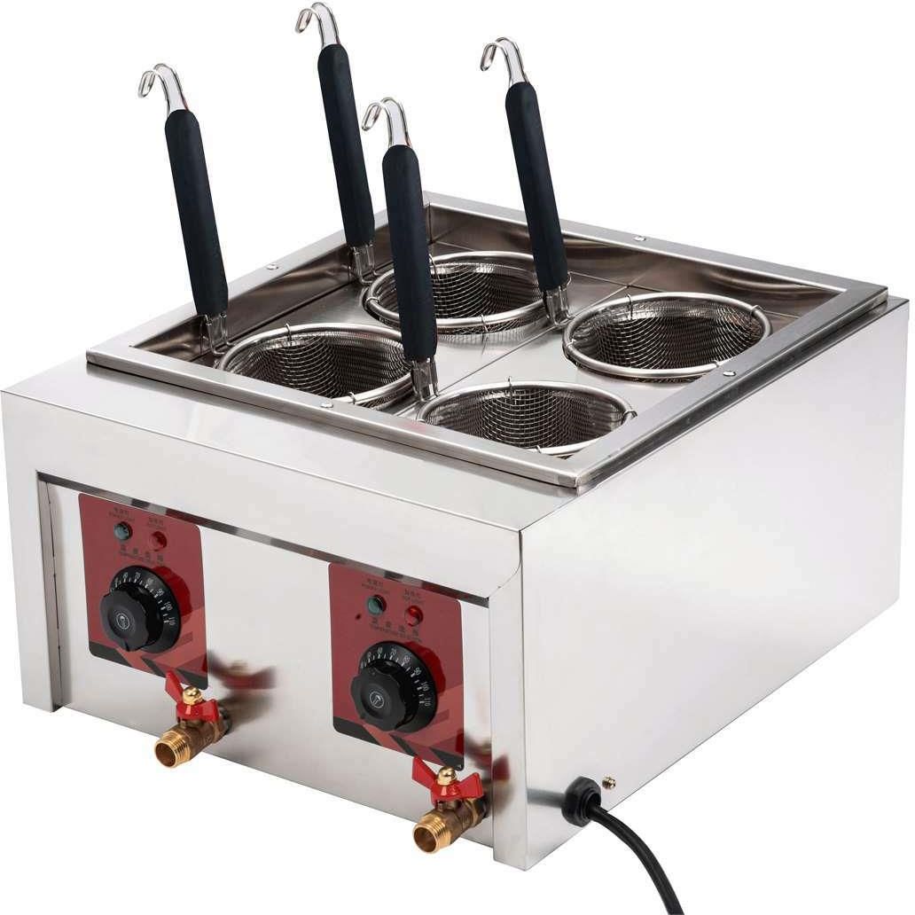 Profesjonalny warnik do gotowania makaronu wyposażony w cztery kosze, idealny do restauracji, barów, food trucków oraz kuchni gastronomicznych. Urządzenie zapewnia szybkie i równomierne gotowanie różnych rodzajów makaronu, a także warzyw czy pierogów. ZALETY PRODUKTU Komora urządzenia przedzielona na 2 osobne strony 2x niezależne pokrętła do regulacji temperatury dla każdej komory z zakresem regulacji od 30 do 110 stopni Celsjusza 2x kranik do zlewania wody w zestawie znajduje się sznurek do uszczelnienia zaworów Łączna moc urządzenia 4kW, po 2kW na każdą z komór Idealny do lokali gastronomicznych serwujących makarony, pierogi, kluski oraz inne produkty wymagające gotowania w wodzie. Niezastąpiony w kuchniach o dużym natężeniu ruchu, gwarantuje efektywność i wygodę pracy. KORZYŚCI Pojemność: Duży zbiornik umożliwia gotowanie większych ilości makaronu jednocześnie Cztery kosze: Ułatwiają przygotowanie różnych rodzajów makaronu lub gotowanie porcji oddzielnie Wysokiej jakości materiały: Wykonany ze stali nierdzewnej, odpornej na korozję i łatwej w czyszczeniu Regulacja temperatury: Możliwość dostosowania temperatury do różnych produktów spożywczych Wydajność: Szybkie podgrzewanie wody dzięki mocnemu elementowi grzewczemu Ergonomiczna konstrukcja: Wygodne uchwyty do bezpiecznego wyjmowania koszy oraz łatwy system odprowadzania wody