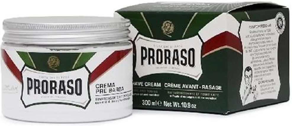 Proraso Green Pre Shave Cream krem przed goleniem 300 ml CO WYRÓŻNIA NASZ PRODUKT Naturalny ekstrakt z eukaliptusa i mentol, które łagodzą podrażnienia i zapewniają uczucie chłodu oraz świeżości podczas i po goleniu. Głębokie nawilżenie dzięki glicerynie i sorbitolowi, chroniące skórę przed wysuszeniem i podrażnieniami. Delikatna formuła z kamforą i olejem eukaliptusowym, zmiękczająca zarost dla łatwiejszego i gładszej golenia. Bezpieczny skład bez szkodliwych substancji, z konserwantami jak sodium benzoate i phenoxyethanol, gwarantujący niezawodność i zgodność z normami bezpieczeństwa skóry. ODNOWA SKÓRY I ZMIĘKCZENIE ZAROSTU! Ten wysokiej jakości krem Proraso Green Pre-Shave Cream 300ml to esencja naturalnej pielęgnacji, która delikatnie zmiękcza zarost i przygotowuje skórę do golenia. Dzięki bogatej formule z gliceryną i olejem eukaliptusowym, zapewnia głębokie nawilżenie i ochronę, pozwalając na gładki, komfortowy proces bez podrażnień. ŁAGODZENIE PODRAŻNIEŃ I ODNOWA W PODCZASIE GOLENIA! Formuła wzbogacona ekstraktem z eukaliptusa, mentolem i kamforą działa kojąco na skórę, redukując zaczerwienienia i zapewniając uczucie świeżości. Idealny zarówno przed, jak i po goleniu, ten krem gwarantuje trwały efekt nawilżenia i ochronę, by każdy dzień zaczynał się z gładką, zadbaną twarzą. PEWNOŚĆ GŁADKIEJ SKÓRY BEZ PODRAŻNIEŃ! Wykonany z naturalnych składników, takich jak aqua, stearic acid i sorbitol, krem Proraso Green zapewnia bezpieczeństwo i niezawodność w codziennym użytkowaniu. Jego delikatna konsystencja wchłania się szybko, nie pozostawiając tłustych śladów, co czyni go nieodłącznym elementem rutyny pielęgnacyjnej dla zdrowej skóry. SWIEŻOŚĆ I KOMFORT NA CO DZIEŃ! Łatwość aplikacji to czysta przyjemność – wystarczy zwilżyć twarz ciepłą wodą, wmasować krem palcami i przejść do golenia bez spłukiwania. To więcej niż krem przedgolebny – to gwarancja luksusowej pielęgnacji, która dostosowuje się do potrzeb Twojej skóry, zapewniając trwały komfort i ochronę. SPECYFIKACJA