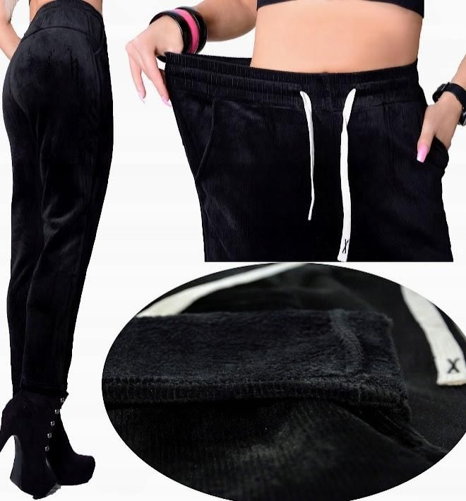 Spodnie welurowe ocieplane z kieszeniami bawełna S/M CZARNE LOOSOO Kałuszyn
