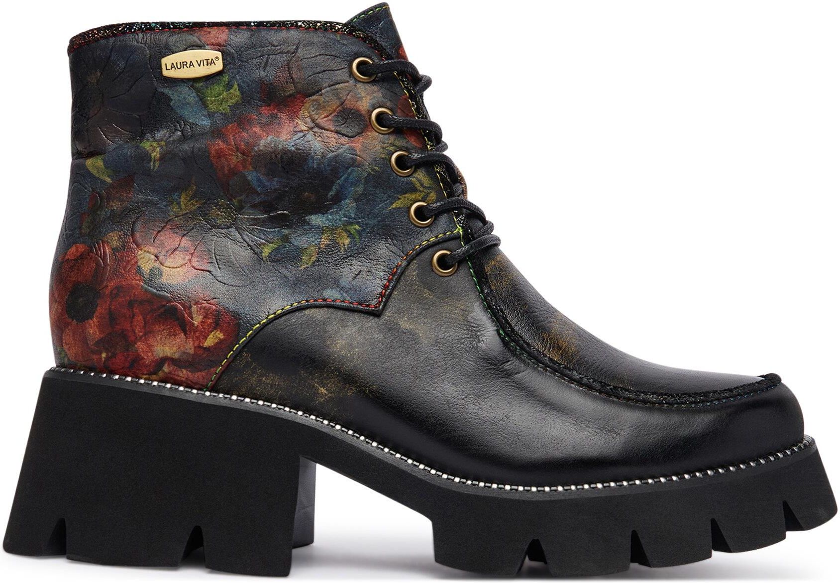 Dodaj do swojej garderoby odrobinę oryginalności dzięki damskim trzewikom marki Laura Vita! Wykonane z połączenia skóry naturalnej licowej i materiału tekstylnego, te buty łączą trwałość z unikatowym stylem. Okrągły nosek nadaje im klasycznego charakteru, a sznurowanie w połączeniu z suwakiem zapewnia wygodę zakładania i idealne dopasowanie. To doskonały wybór dla kobiet, które cenią sobie zarówno funkcjonalność, jak i niebanalny design. Wybierz trzewiki Laura Vita i podkreśl swój wyjątkowy styl każdego dnia!
