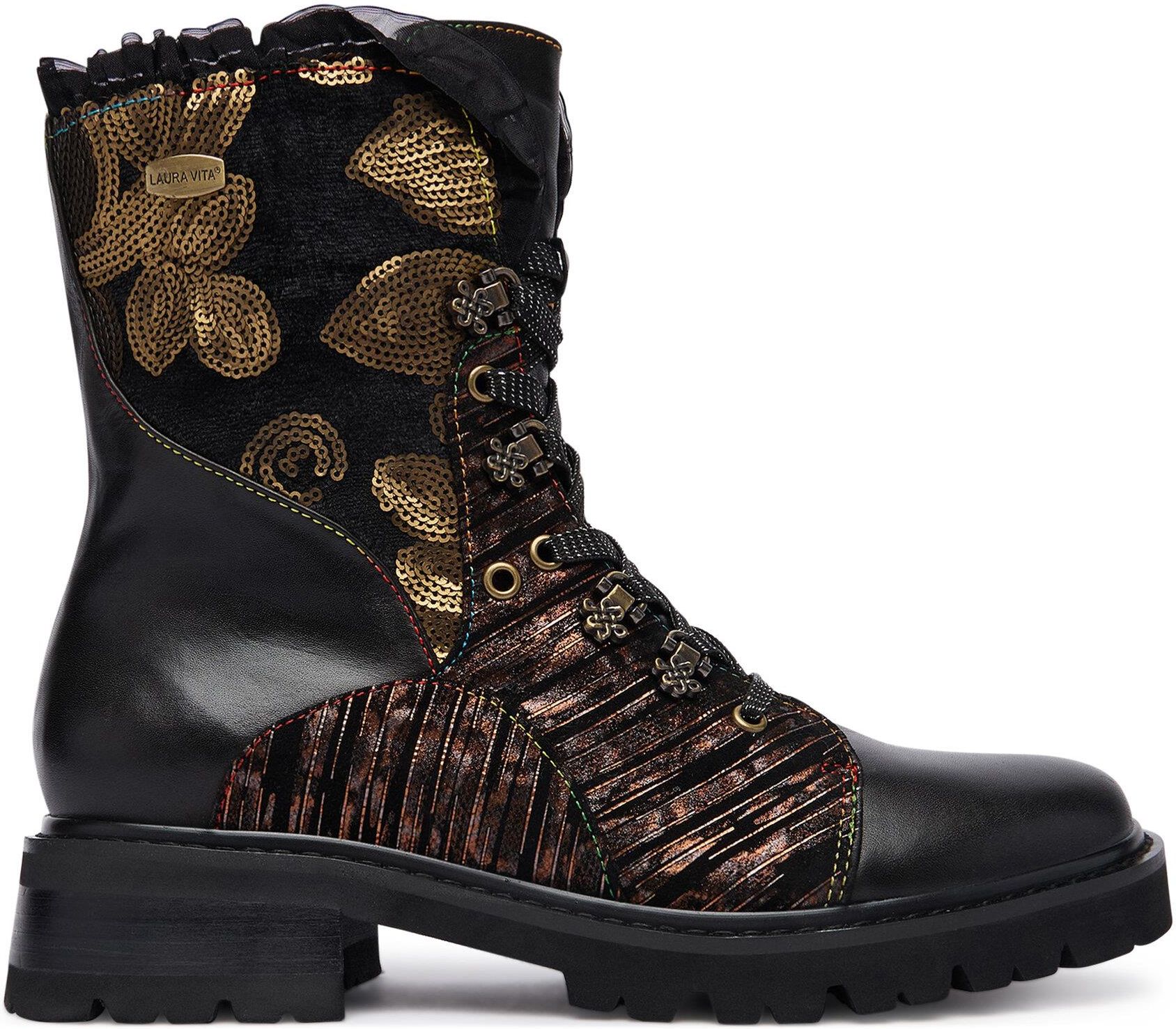 Dodaj do swojej kolekcji wyjątkowe trzewiki damskie od marki Laura Vita! Wykonane z połączenia skóry naturalnej licowej i materiału tekstylnego, te buty zachwycają nie tylko wysoką jakością, ale i niebanalnym designem. Okrągły nosek zapewnia wygodę, a podwójne zapięcie – sznurowane i na suwak – sprawia, że idealnie dopasujesz je do swoich potrzeb, jednocześnie ułatwiając ich zakładanie. Te trzewiki to doskonały wybór dla kobiet ceniących styl i funkcjonalność w jednym. Postaw na Laura Vita i dodaj swoim stylizacjom oryginalnego charakteru!