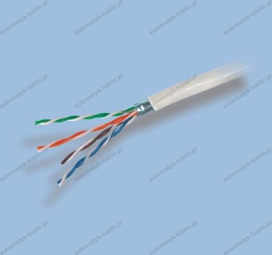 Kabel nosi oznaczenie UTP cat. 5e. Wewnątrz posiada 4x2xstandardowe, kolorowe pary. dren i ekran foliowy oraz linkę nylonową wzmacniającą obciążalność wzdłużną.
