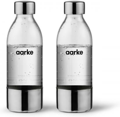 Zapasowe butelki 2 x 450ml Aarke do Carbonatora Aarke 2 i Aarke 3. Wygodny dwupak butelek Aarke, które stanowią idealne uzupełnienie Twojego saturatora do wody. Wykonane z wysokiej jakości, czystego PET dają gwarancję jakości i bezpieczeństwa w użytkowaniu każdego dnia. Butelki są nietoksyczne, wolne od BPA i nie zawierają szkodliwych chemikaliów. Są przetestowane i zatwierdzone zgodnie z niemieckim standardem LFGB, California Prop 65 i FDA CFR 21. Oryginalne butelki Aarke do carbonatorów Aarke o pojemności ok. 450ml Są to butelki zapasowe do urządzeń produkujących wodę gazowaną. Butelki pasują między innymi do saturatorów Aarke seria II i seria III. Więcej bąbelków, mniej plastiku! Pomóż chronić środowisko i zacznij robić wodę gazowaną w domu.Jedna butelka wody Aarke może zastąpić tysiące plastikowych butelek jednorazowego użytku. Jeśli więc regularnie pijesz wodę gazowaną, to ten produkt jest dla Ciebie. Pojemność każdej butelk: ok. 450ml Zawsze nalewaj wodę do poziomu oznaczonego na butelce.