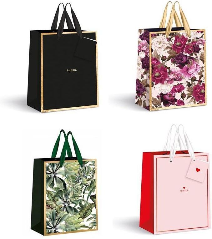 Miks wzorów, towar wysyłany losowo. Cena za sztukę. Torebka prezentowa mała Gold, różne wzory. Wymiary torebki: 46 x 33 x 10 cm.