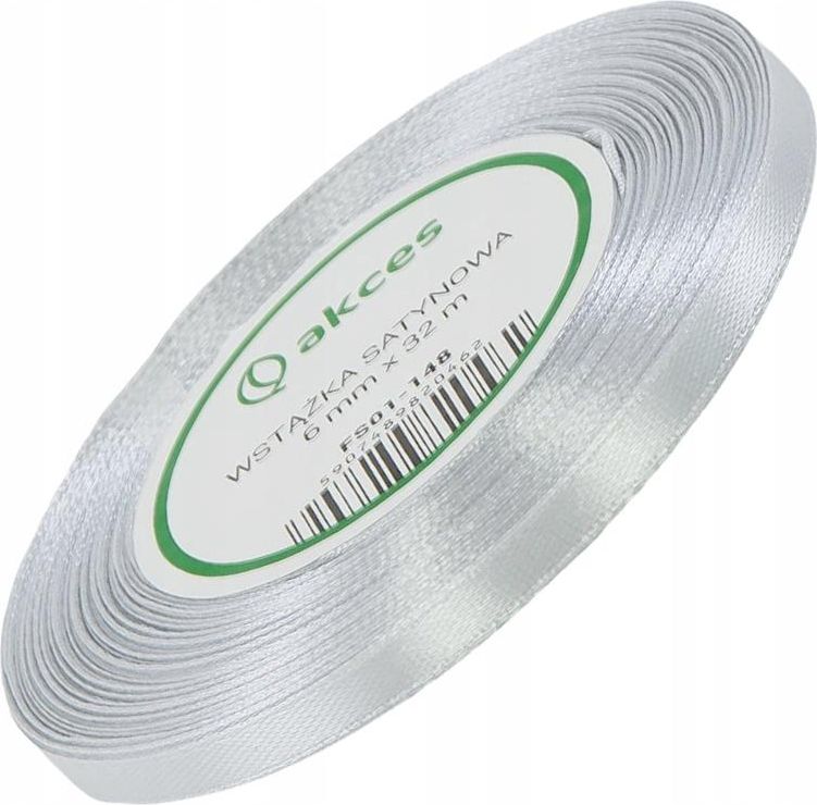 Wstążka satynowa srebrna 6mm 32mb Kamień Krajeński