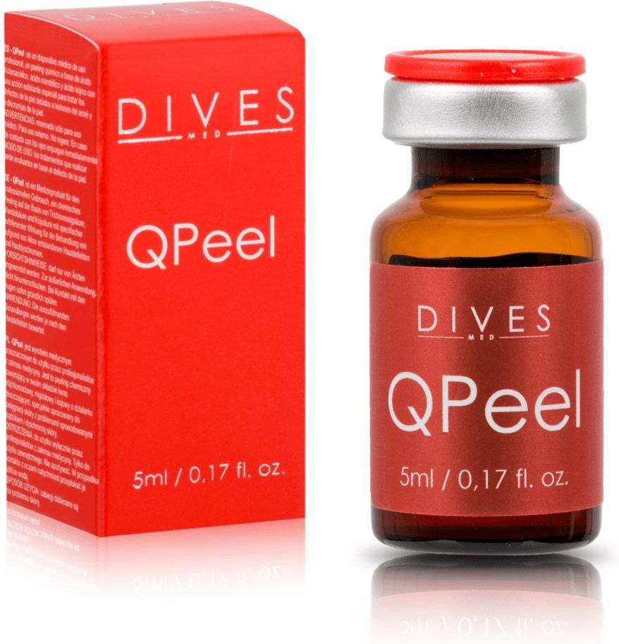 Dives MED QPeel 1x5ml to zaawansowany zabieg medyczny, który działa na skórę w sposób selektywny, stymulując głębokie warstwy skóry bez uszkadzania zewnętrznych warstw naskórka. Skuteczność i Bezpieczeństwo Dzięki zastosowaniu kwasu trójchlorooctowego, migdałowego i kojowego, QPeel intensywnie regeneruje skórę, zagęszczając ją, wygładzając i remodelując. Zabieg ten jest doskonałym rozwiązaniem dla osób poszukujących niwelowania oznak starzenia się skóry oraz hiperpigmentacji, bez potrzeby poddawania się inwazyjnym procedurom. Kompleksowe Działanie QPeel można stosować samodzielnie lub w połączeniu z innymi zabiegami medycyny estetycznej, co pozwala na intensyfikację i przedłużenie efektów terapii. Produkt ten gwarantuje widoczne rezultaty, takie jak poprawa napięcia skóry, wygładzenie jej struktury oraz rozjaśnienie, a wszystko to bez konieczności długotrwałej rekonwalescencji. Dostosowanie do Indywidualnych Potrzeb QPeel oferuje kompleksowe działanie, które można dostosować do indywidualnych potrzeb pacjenta, co czyni go wyjątkowym rozwiązaniem w terapii skórnej. Dzięki niemu można skutecznie zwalczać objawy starzenia skóry i fotostarzenia oraz redukować różnego rodzaju niedoskonałości skórne i hiperpigmentację. SKŁADNIKI AKTYWNE QPEEL: Kwas trójchlorooctowy – pochodna kwasu octowego stanowiąca najsilniejszy kwas pochodzenia organicznego stosowany w kosmetyce i medycynie estetycznej. Powoduje chemiczne uszkodzenie naskórka, mogące dosięgać nawet do warstwy brodawkowej skóry właściwej. Inicjuje procesy autonaprawcze, polegające na całkowitej wymianie uszkodzonych komórek i głębokiej redermalizacji skóry. Pozytywnie wpływa na metabolizm i strukturę skóry, stymulację syntezy kolagenu i elastyny oraz uzupełnienie endogennego kwasu hialuronowego. Kwas migdałowy– kwas AHA o dużej gradacji i wysokim profilu bezpieczeństwa, pozyskiwany z gorzkich migdałów. Zwiększa proliferację i wymianę komórek przy niskim poziomie podrażnienia skóry. Zmniejsza widoczność drobnych zmarszczek i porów oraz poprawia strukturę skóry dzięki stymulacji produkcji kolagenu i elastyny. Szerokie zastosowanie i efektywność w wielu problemach estetycznych sprawia, że jest jednym z najczęściej stosowanych peelingów w kosmetyce i medycynie. Nie uwrażliwia płaszcza fotoochronnego skóry na promieniowanie UV i może być stosowany przez cały rok. Kwas kojowy – inhibitor tyrozynazy, uczestniczący w każdym etapie tworzenia melaniny. Działa silnie depigmentująco i rozjaśniająco, poprawia koloryt i nawilżenie skóry. Uodparnia skórę na szkodliwy wpływ promieniowania UV oraz stymuluje jej regenerację.