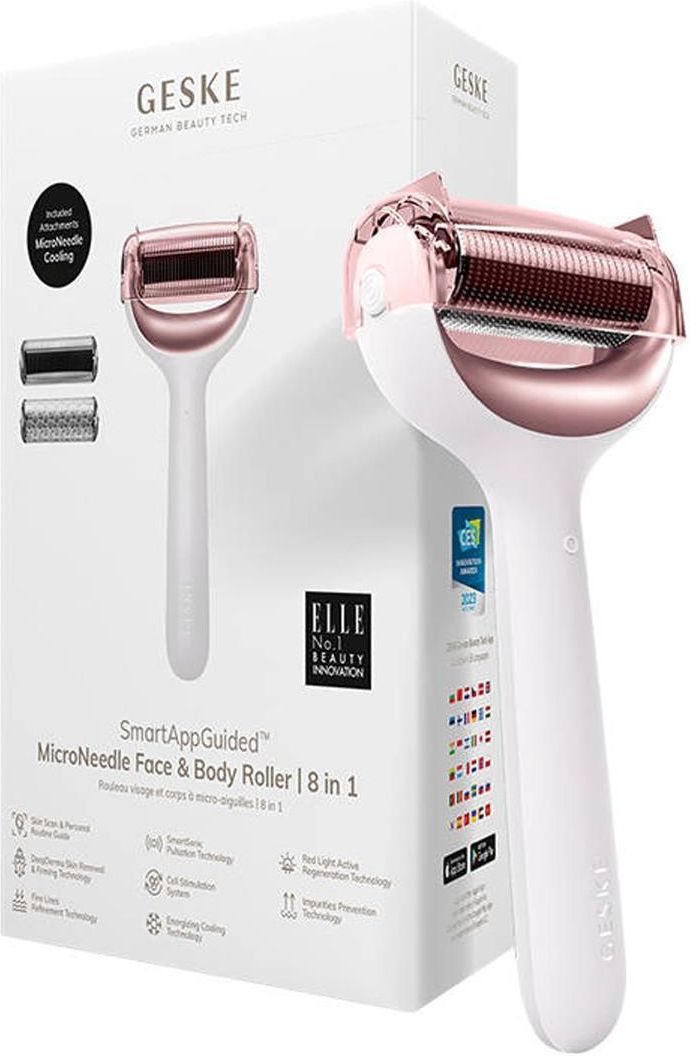 Geske Roller do Mezoterapii Igłowej Twarzy i Ciała 8w1 z Aplikacja Masażer Producent: Geske Numer Produktu: RC053072 Specyfikacja Nazwa Microneedle Face & Body Roller | 8 in 1 Model GK000043SL01 Kolor Starlight Materiał Silikon Aplikacja GESKE German Beauty Tech W zestawie Roller 8w1 Nasadka do mezoterapii igłowej Nasadka chłodząca Materiał wideo prezentujący produkt: https://youtu.be/MhYzPvYLsR4 Roller do mezoterapii igłowej twarzy i ciała 8w1 Geske z Aplikacją (starlight) Spełnij swoje marzenia o pięknej, gładkiej skórze i we własnym domu poczuj się jak w profesjonalnym salonie SPA. Roller do mezoterapii igłowej twarzy i ciała 8w1 marki Geske pozwoli Ci bez trudu uzyskać pożądane rezultaty. Dzięki niemu Twoja cera nabierze wspaniałego blasku, tekstury i jędrności, z łatwością pozbędziesz się też drobnych zmarszczek i worków pod oczami. Do dyspozycji masz także dedykowaną aplikację, która oferuje między innymi spersonalizowane plany pielęgnacyjne i tysiące poradników wideo. W skład zestawu wchodzi nasadka do mezoterapii igłowej oraz nasadka chłodząca. Marka Geske została doceniona przez magazyn Elle tytułem No.1 Beauty Innovation. Gładka, jędrna skóra Planujesz wielkie wyjście? A może po prostu chcesz szybko odświeżyć cerę i nadać jej promienny wygląd? Roller Geske przychodzi z pomocą! Wystarczy kilka sesji mezoterapii igłowej i chłodzenia, aby rozluźnić i ujędrnić mięśnie twarzy. Dzięki temu wyeliminujesz też drobne zmarszczki i obrzęki. Urządzenie zapewnia również doskonały efekt liftingu, zwiększa produkcję kolagenu i poprawia wchłanianie składników odżywczych z kosmetyków. Zapomnij o długotrwałym oczekiwaniu na wizytę w salonie SPA czy klinice dermatologicznej – teraz możesz wygodnie przeprowadzać zabiegi pielęgnacyjne w domowym zaciszu. Technologie w służbie piękna Roller do twarzy 8w1 Geske obsługuje kilka zaawansowanych technologii, które pomogą Ci nadać skórze promienny, zachwycający wygląd. Technologia SmartSonic Pulsation wysyła nawet 8000 impulsów dźwiękowych na minutę, zapewniając delikatny masaż i usuwając zanieczyszczenia, a Red Light Active Regeneration eliminuje drobne zmarszczki. Technologia Impurities Prevention gwarantuje długotrwały efekt oczyszczania, Fine Lines Refinement minimalizuje oznaki starzenia, a Energizing Cooling zwalcza obrzęki i zmęczenie, zwężając przy tym pory i wygładzając twarz. Na uwagę zasługuje także technologia DeepDerma Skin Renewal & Firming, która odpowiada za stymulację głębszych warstw skóry. Plan pielęgnacyjny dostosowany do Ciebie Pobierz darmową aplikację GESKE German Beauty Tech i odkryj nowy wymiar pielęgnacji. Gdy zeskanujesz swoją skórę za pomocą smartfona, zaawansowany algorytm sztucznej inteligencji rozpozna jej typ, przeanalizuje jej potrzeby i wykryje ewentualne problemy, a następnie na tej podstawie wygeneruje spersonalizowany plan pielęgnacyjny. Postępując zgodnie z zaleceniami, zauważalnie poprawisz stan swojej cery bez większego wysiłku! W aplikacji znajdziesz również mnóstwo materiałów wideo z poradami profesjonalistów, którzy wprowadzą Cię w świat skutecznej pielęgnacji i pomogą uzyskać wymarzone rezultaty. Prosta droga do celu Aplikacja GESKE German Beauty Tech pozwala też wyznaczać różne cele pielęgnacyjne do osiągnięcia – roller 8w1 znajdzie zastosowanie w wielu z nich. Pomoże Ci rozwiązać problemy związane ze stanem skóry, na przykład worki pod oczami czy drobne zmarszczki. Nada się również do tonizowania cery i sprawi, że Twoja twarz stanie się bardziej promienna. Co więcej, w aplikacji znajdziesz propozycje innych produktów Geske, które pozwolą Ci uzyskać jeszcze lepsze efekty – dzięki szczegółowym opisom ich funkcji i zastosowań bez trudu wybierzesz odpowiednie urządzenia i kosmetyki dla siebie! Dopracowana w każdym szczególe Do wykonania rollera zastosowano wysokiej klasy silikon, który jest przyjemny w dotyku i przyjazny dla skóry – nie musisz obawiać się podrażnień. Produkt jest też bardzo prosty i wygodny w obsłudze. Teraz bez trudu urządzisz swoje domowe SPA! Ponadto wchodzące w skład zestawu nasadki są bardzo wytrzymałe, a ich wymiana jest wyjątkowo łatwa i szybka. Dzięki temu w mgnieniu oka dostosujesz roller do swoich potrzeb! Urządzenie obsługuje także ładowanie magnetyczne.