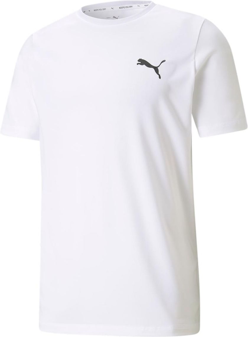 Koszulka Puma Active Small Logo Tee M 586725 02 Właściwości koszulka marki Puma doskonała na co dzień dla mężczyzn standardowy krój okrągły dekolt krótkie rękawki logo producenta Kolor biały