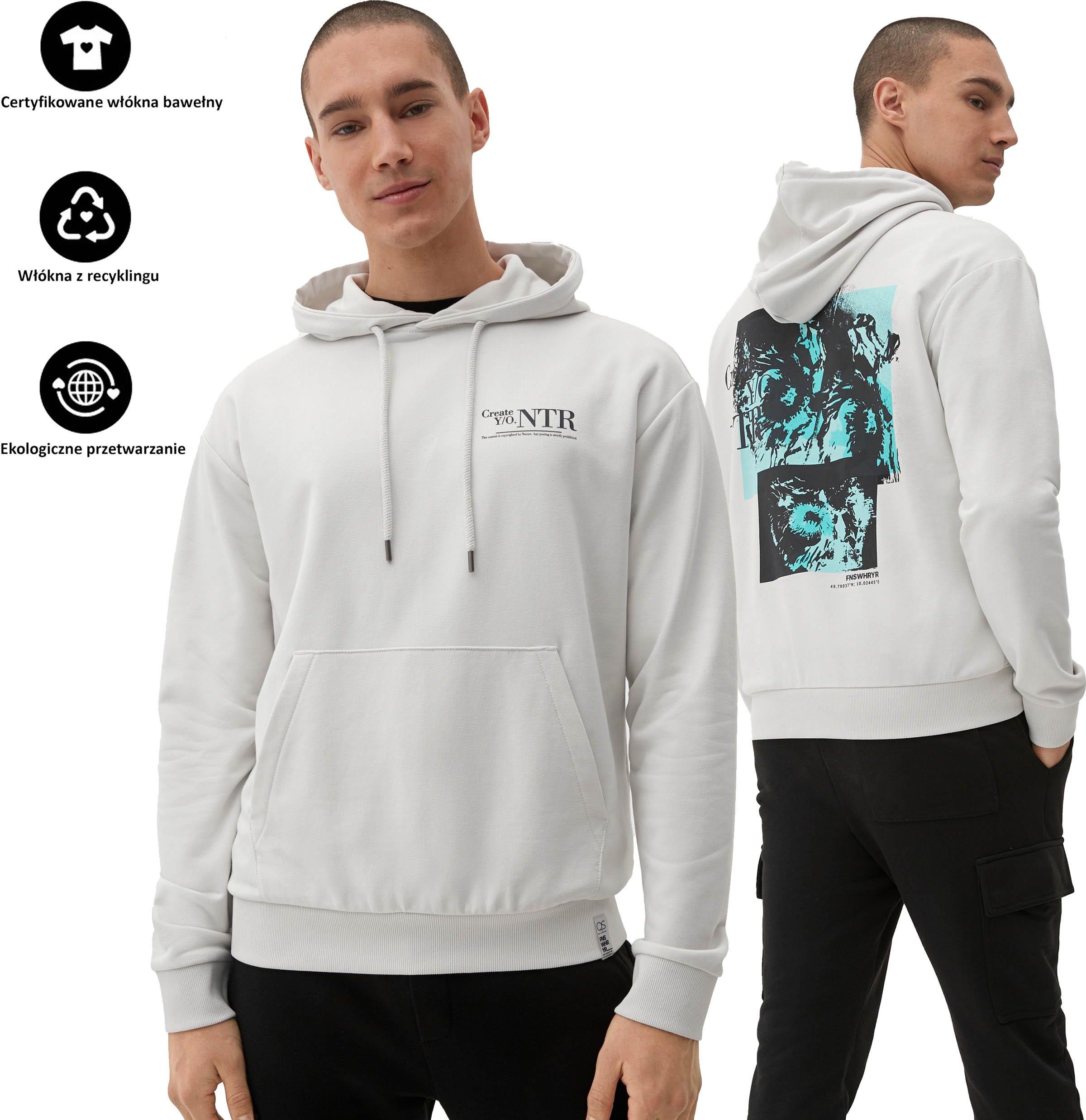Bluza męska s.Oliver ecru XXLCertyfikowane włókna bawełny Informacje o produkcie: Bluza męska s.Oliver Kaptur stały, panel ze sznurkiem Prążkowane mankiety i dół Kieszeń kangur Duża grafika na plecach i mały nadruk z przodu Dopasowanie: Regular Fit Materiał: 60% bawełna, 40% poliester Produkt ten wspiera ekonomiczną, ekologiczną i społeczną uprawę bawełny. Pozyskiwanie zrównoważonej bawełny odbywa się zgodnie z zasadą równowagi masy.Q/S by s.Oliver