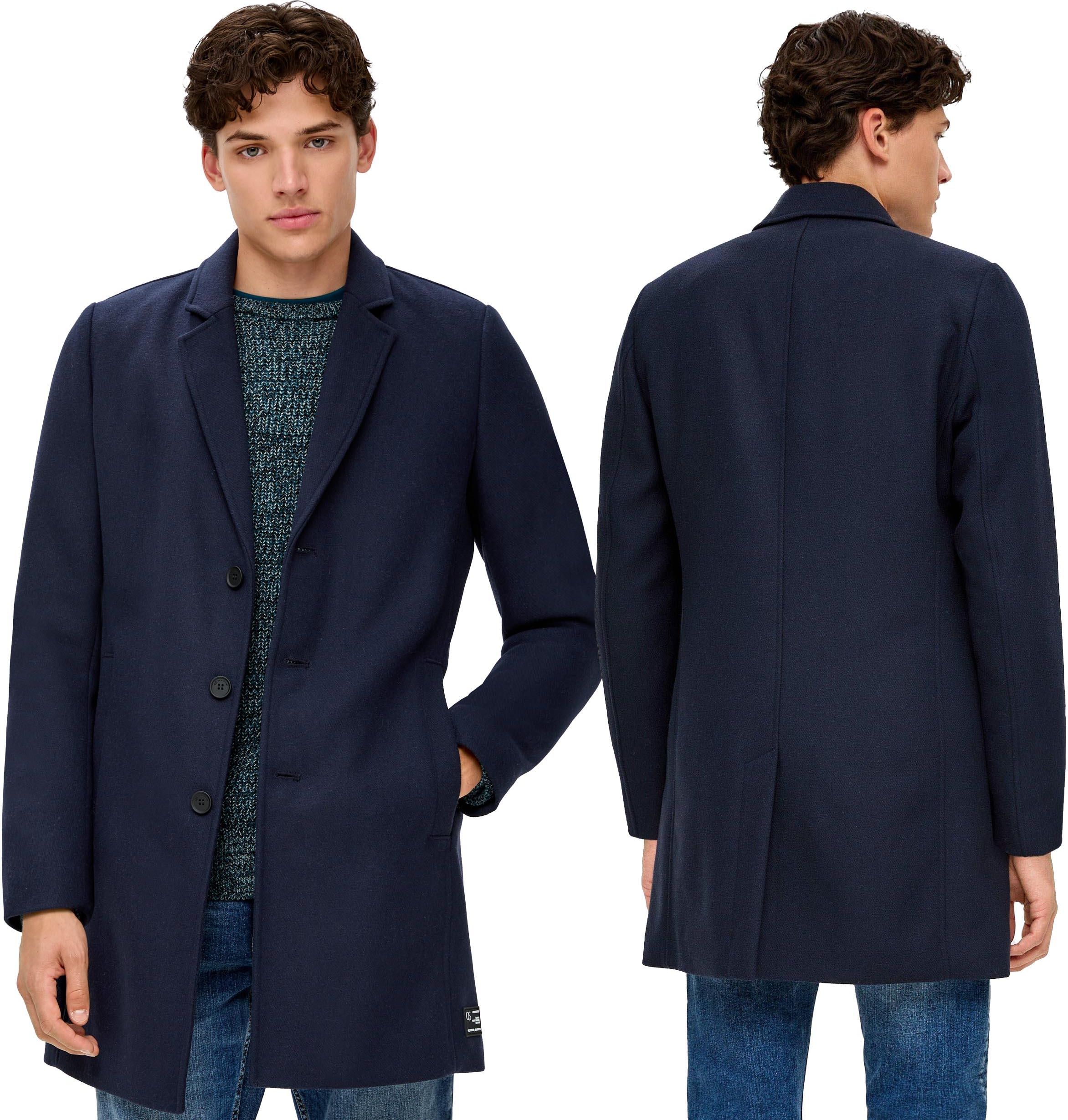 Płaszcz męski s.Oliver Q.S. granatowy - XXLInformacje o produkcie: Płaszcz męski s.Oliver Kołnierz: klapy Zapięcie na guziki Kolor: granatowy Naszywka z logo Dopasowanie: Regular Fit Materiał: 67% poliester, 18% wełna, 10% poliakryl, 3% poliamid, 2% wiskoza Podszewka: 100% poliester s.Oliver