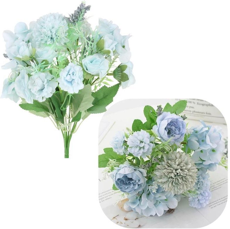 Chryzantema Róże Bukiet Sztucznych Kwiatów Do Kompozycji Wazonu 32 cm Niebieski Kamieńsk