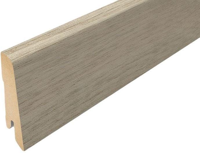 Listwy przypodłogowe, chociaż określane są jako akcesoria, pełnią istotną rolę estetyczną i funkcjonalną. Prezentowany model pozwala na skutecznie ukrycie szczeliny dylatacyjnej, zabezpieczając tym samym powierzchnię przed nadmiernym gromadzeniem się kurzu i zabrudzeń. Dodatkowo za produktem można schować okablowanie lub przewody. Do produkcji listwy przypodłogowej wykorzystano wytrzymałą na czynniki codziennego użytkowania płytę MDF. Dzięki temu jest odporna na wilgoć czy też uszkodzenia mechaniczne. Prezrentowana listwa posida długość 240 cm, wysokość 6 cm oraz szerokość 1,7 cm