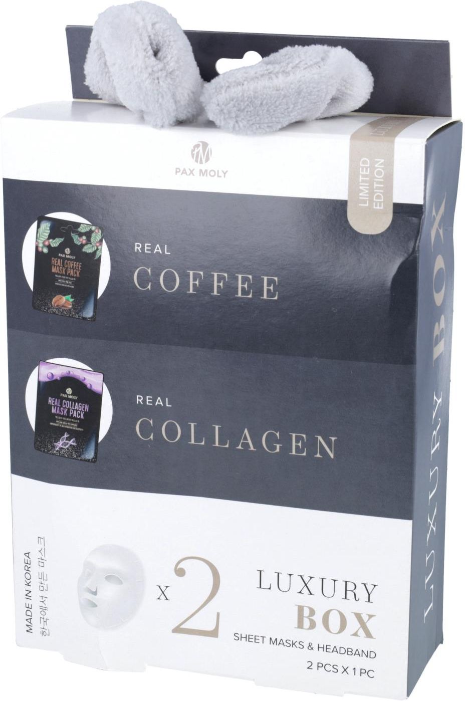 Pax Moly - Luxury Box, zestaw 2 maseczek w płachcie z opaską kosmetyczną, 1 komplet Kamieńsk