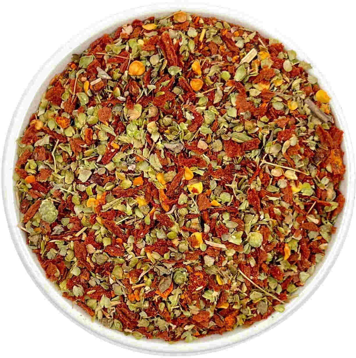 Pomidor z chilli i oregano to soczysta i aromatyczna kompozycja smaków, która pobudza zmysły i dodaje ognistej nuty do każdego dania. Świeże pomidory nadają słodycz, podczas gdy oregano dodaje głębi i ziołowego charakteru. Dodatek ostrej chili podkręca intensywność smaku, tworząc wyjątkowe połączenie idealne do sałatek, sosów czy makaronów. Informacje dodatkowe: WARTOŚCI ODŻYWCZE WARTOŚĆ W 100G Wartość energetyczna kcal 226.70 Wartość energetyczna kJ 960.70 Tłuszcz 2.81 w tym kwasy tłuszczowe nasycone 0.69 Węglowodany 40.38 w tym cukry 26.52 Błonnik 6.25 Białko 0.07 Sól 0.90 Składniki: pomidor 50%, chili 30%, oregano 20%. Informacje o alergenach: *Produkt może zawierać zboża zawierające: gluten, seler, gorczycę, nasiona sezamu, orzeszki ziemne oraz orzechy Forma: mieszanka Zastosowanie: do sałatek do sosów i marynat do dań jednogarnkowych dodatek do serów Kształt: mielone Smak: słodki ostry Zawartość soli: bez soli Sód: 0.90 Waga: 500g