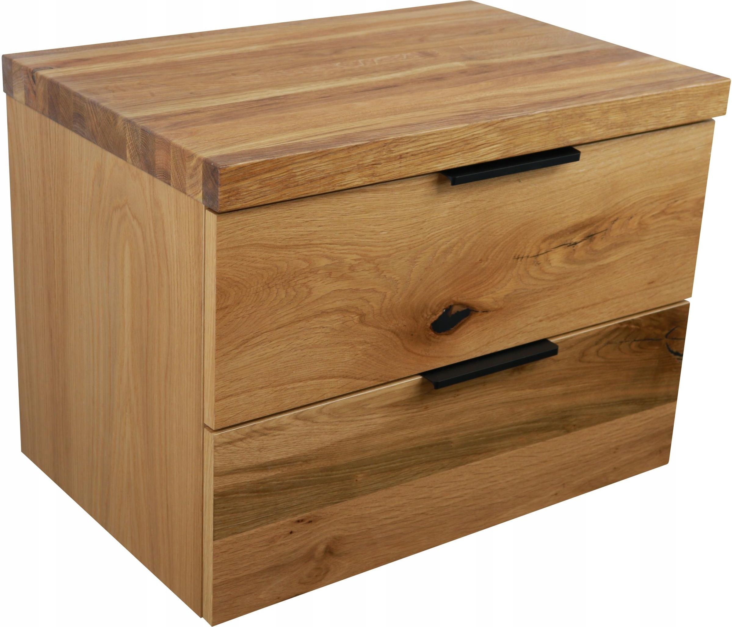 Podwieszana szafka łazienkowa pod umywalkę z LITYM OLEJOWANYM BLATEM DĘBOWYM. RUSTYKAL W 50 Nowoczesna, podwieszana szafka łazienkowa z blatem, do zastosowania umywalki nablatowej. Blat wykonany z litego drewna dębowego o grubości 4 cm. Powierzchnia obustronnie pokryta olejem w celu zabezpieczenia przed wilgocią. Idealnie sprawdzi się w każdej łazience jednocześnie nadając jej charakteru. Dwa efektowne uchwyty krawędziowe (czarne). Dwie szuflady, prowadnice klasy PREMIUM (comfort box firmy REJS) z dożywotnią gwarancją. Systemem cichego domykania, który sprawia, że szuflada w ostatniej fazie zamykania zwalnia, a następnie bezdźwięcznie się zamyka. Cała szafka (boki oraz fronty) wykonana z płyty pokrytej naturalnym fornirem dąb rustykalny - dodatkowo lakierowana. Każdy z frontów ma unikalny układ sęków/słojów. Stosowane przez nas lakiery poliuretanowe charakteryzują się wysoką odpornością na wilgoć panującą w łazience - warto zwrócić na to uwagę podczas zakupu mebli łazienkowych, aby służyły wiele lat. W górnej szufladzie wycięcie wraz z osłonką na odpływ umywalki. Wymiary zestawu (łącznie z blatem) Szerokość: 50 cm Wysokość: 44 cm Głębokość: 40 cm Na pozostałych aukcjach inne rozmiary oraz modele. BLAT WYKONANY Z LITEGO DREWNA DĘBOWEGO! Wykorzystywany przez nas olej służy do ochrony i dekoracji blatu. Dzięki swym właściwościom pozostawia wodoodporną, naturalną i bezbarwną powierzchnię. System cichego domykania Prowadnice szuflad klasy PREMIUM (comfort box firmy REJS) z dożywotnią gwarancją. Zawartość przesyłki ZŁOŻONA szafka lity blat dębowy 50cm x 40cm x 4cm zawieszki do powieszenia szafki paragon/faktura