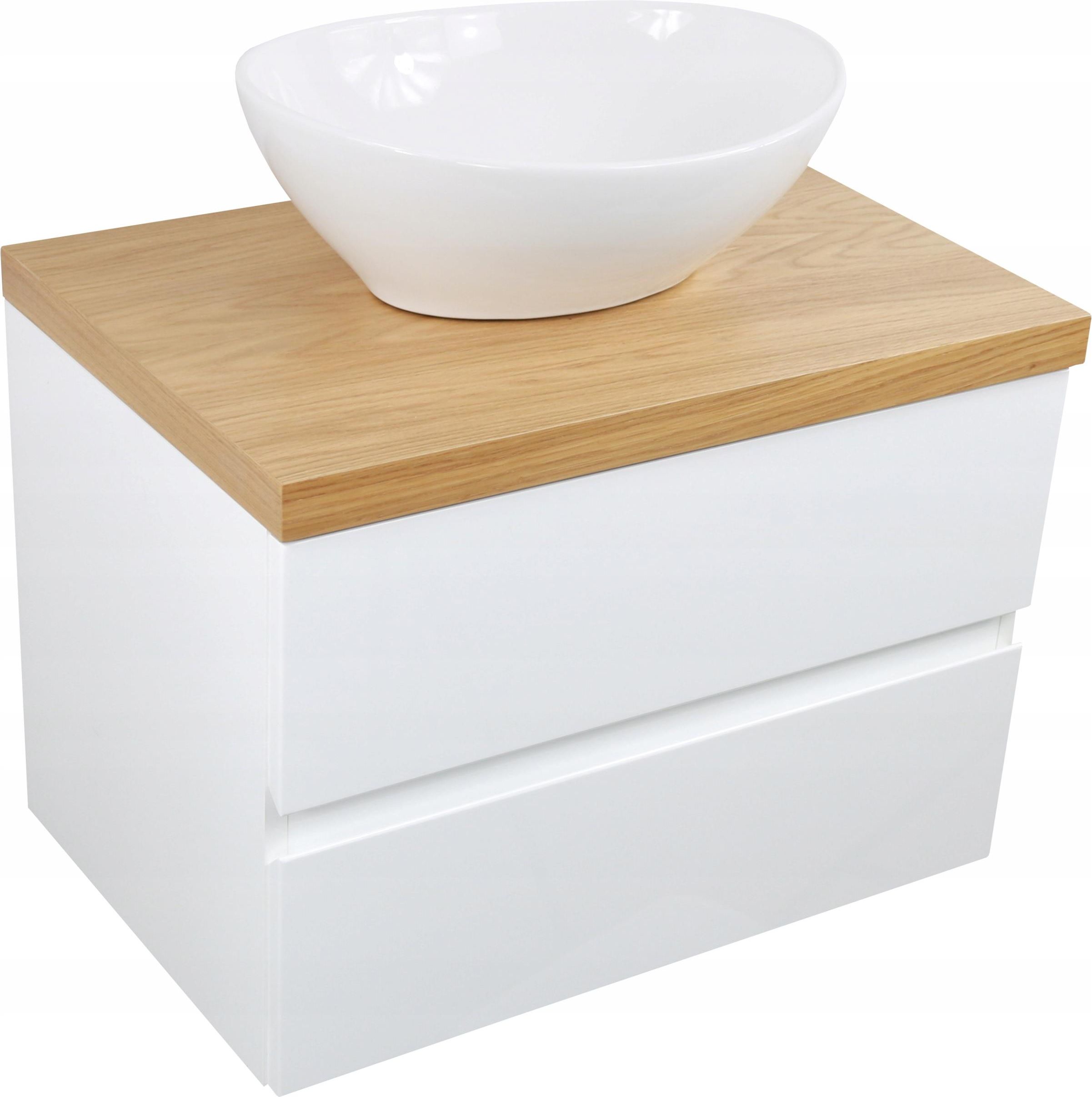 ZŁOŻONA Podwieszana szafka łazienkowa pod umywalkę z dębowym blatem Model: BLANKA WS 70 Nowoczesna, podwieszana szafka łazienkowa, idealna do zastosowania z umywalką nablatową. Fronty szafki wykonano z lakierowanej płyty MDF, odpornej na działanie wody i środków czyszczących. Boki zrobiono z …