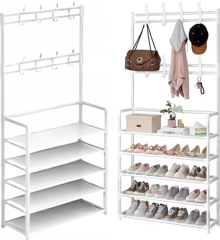 Wieszak na ubrania z półkami na buty to idealne rozwiązanie na uporządkowanie naszych kurtek i ułożenie sterty butów leżącej w przedpokoju lub szafie. Całość jest wąska, dzięki czemu łatwo zmieści się przedpokoju. Sprawdzi się również w szkołach czy przedszkolach do przechowywania butów i kurtek. …