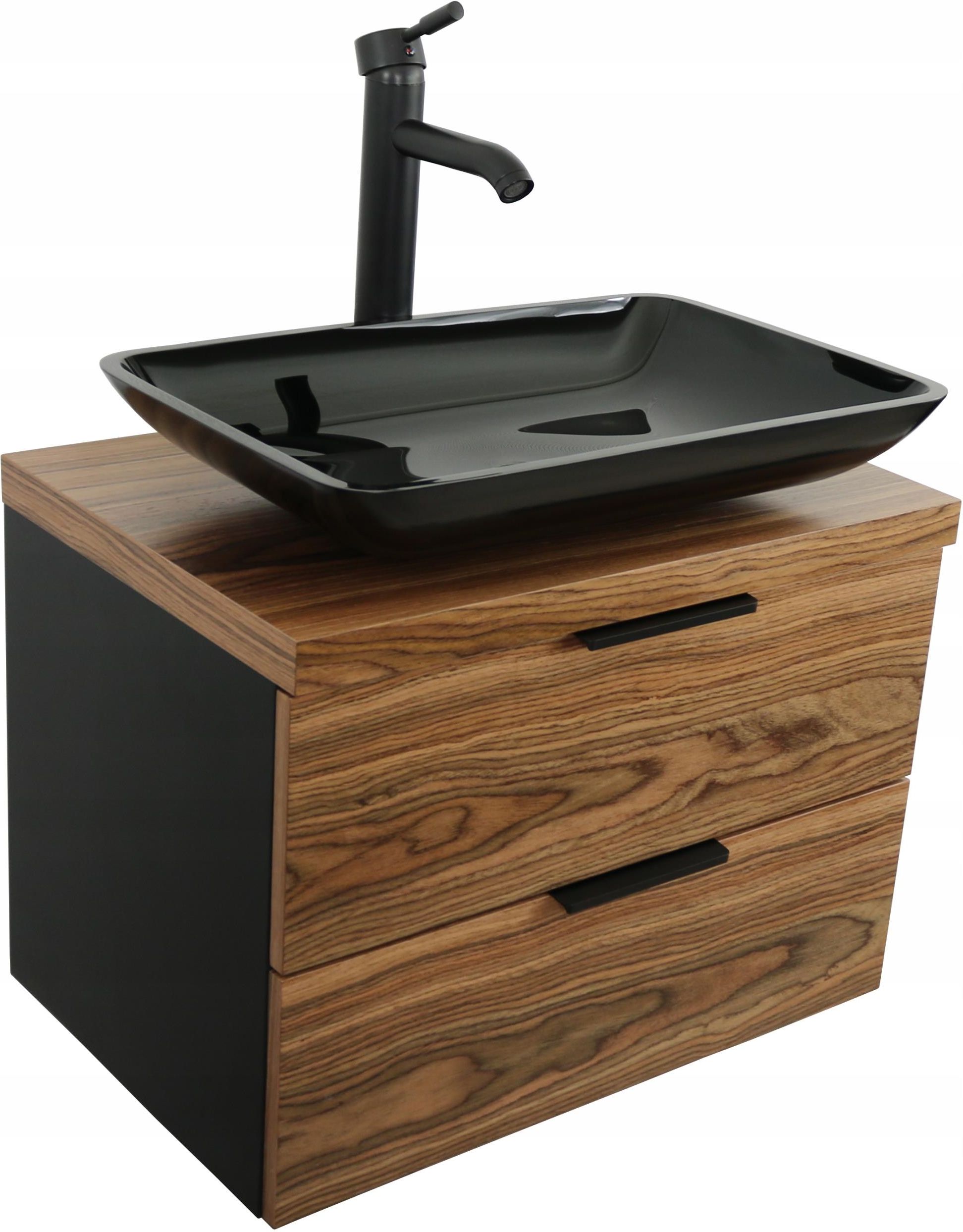 ZŁOŻONA SZAFKA POD UMYWALKĘ + BLAT | 70 CM | CZARNY MAT + ORZECH | LAKIER Kamieńsk