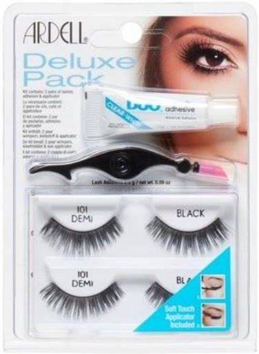 Ardell Deluxe Pack Zestaw Rzęs w Paskach 101 + Aplikator + Klej Zestaw startowy Ardell Deluxe Pack zawiera: Dwie pary rzęs o modelu 101 Demi Black Klej DUO Clear-White o pojemności 2.5g Aplikator do rzęs Sztuczne rzęsy z dołączonym aplikatorem - świetnie dopasowują się do linii oka. Rzęsy idealnie dopełniają każdy, nawet najprostszy makijaż oka. Produkt wielokrotnego użytku. Sposób użycia: 1. Niewielką ilość kleju nanieść ilość kleju na pasek rzęs. Odczekać ok. 30 sekund aż preparat nieco wyschnie. 3. Przyłożyć aplikator z rzęsami do naturalnej linii rzęs i lekko docisnąć. 4. Połączyć sztuczne rzęsy z naturalnymi, łapiąc je pomiędzy palce i dociskając jedne do drugich.