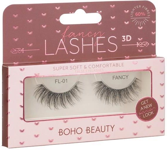 Falsh Eyelashes - Fancy Lashes 3D marki Boho Beauty. Sztuczne rzęsy. Zapewniają spojrzeniu wyrazistości. Są bardzo miękkie, puszyste oraz lekkie. Wykonane zostały ręcznie w 100% z pustych w środku syntetycznych włókien, które umieszczono na cienkim, transparentnym, elastycznym pasku. Dodatkowo ich ciężar jest mniejszy nawet do 60% od tradycyjnych rzęs, dzięki czemu nie obciążają powieki. Bez problemu mogą być stosowane wielokrotnie. Dostępne są w czarnym kolorze. Sztuczne rzęsy. Są bardzo miękkie i lekkie.Umieszczono je na bezbarwnym pasku.Wykonane zostały z pustych w środku syntetycznych włókien.