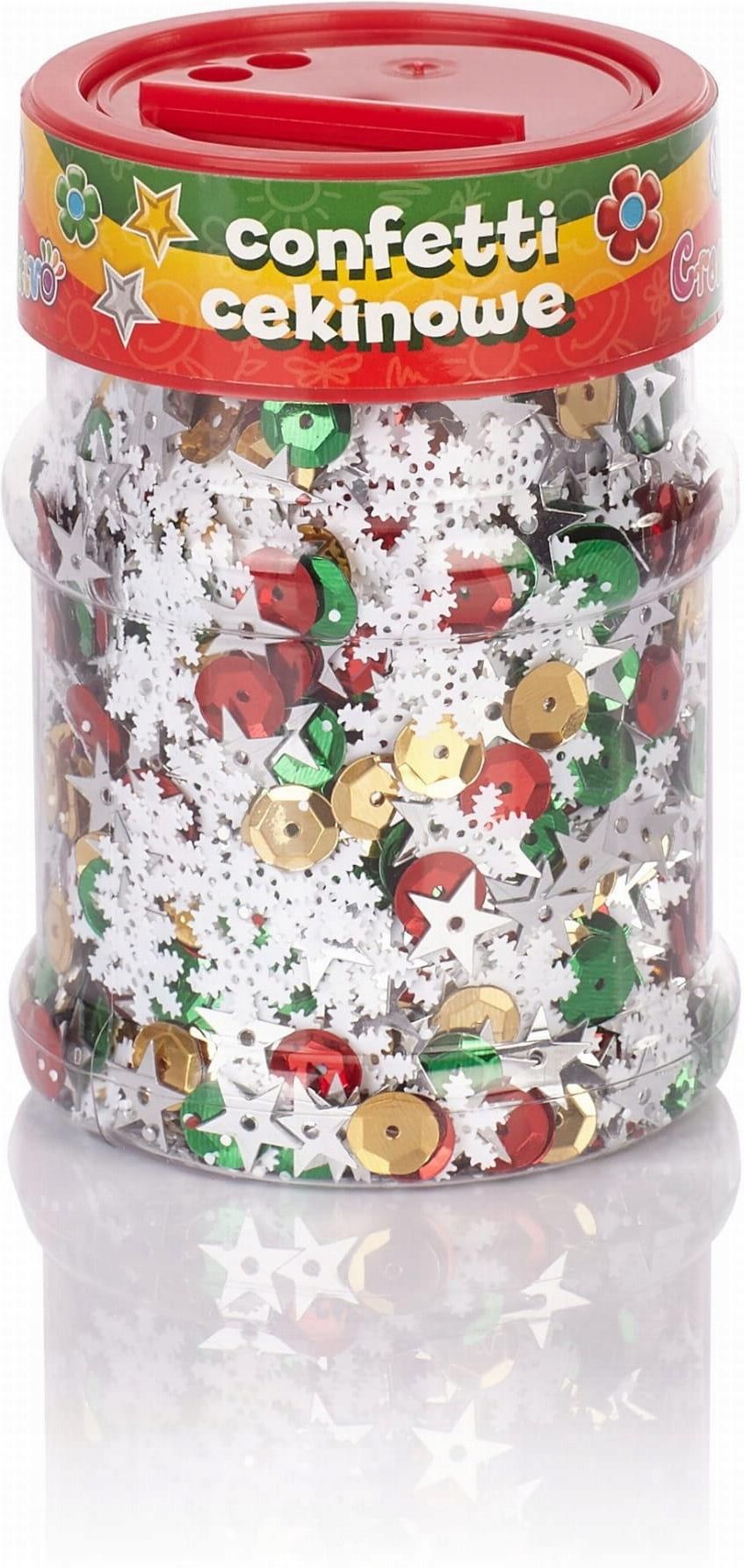 Confetti cekinowe kółka Astra Creativo - mix świąteczny 100g. Zestaw do dekoracji przeznaczony do prac plastycznych, ozdób choinkowych i wielkanocnych, kartek świątecznych i scrapbookingu. Idealnie nadaje się do ozdabiania m.in. kul i styropianowych jajek.