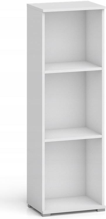 Regał biurowy niski, otwarty, na książki RELIC biały 110 x 40 x 40 cm Regały z seriiRELIC to solidnie wykonane stabilne meble przeznaczone do biur i pomieszczeń domowych. Regały dostępne są w czterech modnych wariantach kolorystycznych oraz występują w różnych wersjach wielkościowych z drzwiczkami lub bez. Do wyboru szerokość (30 cm, 40 cm, 60 cm, 80 cm), wysokość (110 cm, 215 cm), głębokość (32 cm, 40 cm). Informacje dodatkowe klasyczne wzornictwo trzy wytrzymałe półki dopasowany do segregatorów biurowych podwyższona trwałość i odporność na uderzenia możliwość montażu bez nóżek korpus w kolorze biały mat Regał do samodzielnego montażu z czytelną instrukcją. Wymiary szerokość 40 cm wysokość 110 cm głębokość 40 cm wysokość półek 33,5 cm Materiał. Korpus wykonano z płyty laminowanej producenta Kronopol o grubości 16 mm w kolorze biały mat. Plecy zrobiono z płyty HDF 3 mm. Obrzeża. Krawędzie płyty są oklejone PCV odpornym na wilgoć i zarysowania.