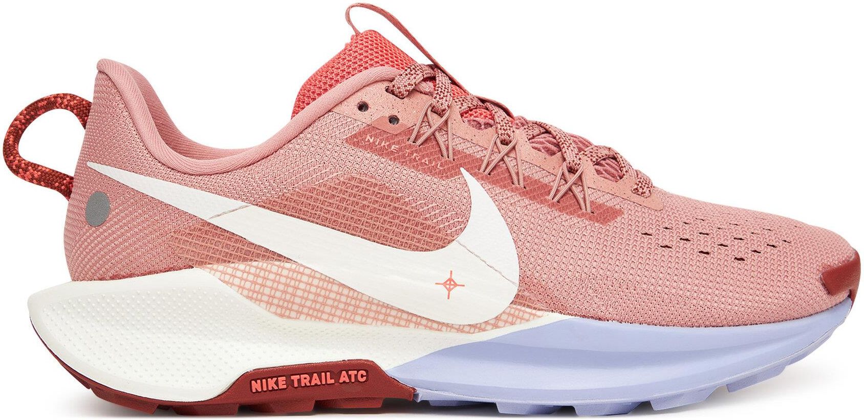 Nike Pegasus 5 Damskie buty do biegania w terenie - Red stardust/mars stone-sail-lilac ice DV3865-601 Roz. 39 Najważniejsze cechy damskich butów do biegania w terenie Nike React Pegasus Trail 5 Technologia Flywire jest zintegrowana z paskiem w śródstopiu i zapewnia optymalne wsparcie Nowa pianka ReactX w podeszwie środkowej zapewnia dodatkową amortyzację Zapewnia wyprostowaną, stabilną pozycję na kamienistych szlakach, oferując jednocześnie płynną jazdę na drodze Gumowa podeszwa zewnętrzna owija się wokół przedniej części stopy, zapewniając odporność na ścieranie i trwałość Siateczka połączona z otwartymi otworami w cholewce dla lepszej oddychalności Siateczka z ciaśniej tkanym materiałem w obszarach narażonych na zużycie, takich jak palce Szczegóły damskich butów do biegania w terenie Nike React Pegasus Trail 5 W porównaniu z poprzednim modelem w podeszwie zewnętrznej zastosowano mniej gumy, co umożliwia płynne przejścia między drogą a szlakiem. Podeszwa środkowa ReactX na całej długości została zachowana. Owija się ona również wokół przedniej części buta i zapewnia dodatkową trwałość. Generatywny wzór trakcji w połączeniu z gumą w przedniej części stopy zapewnia dodatkową przyczepność na technicznych szlakach i zapewnia płynną jazdę na szosie.