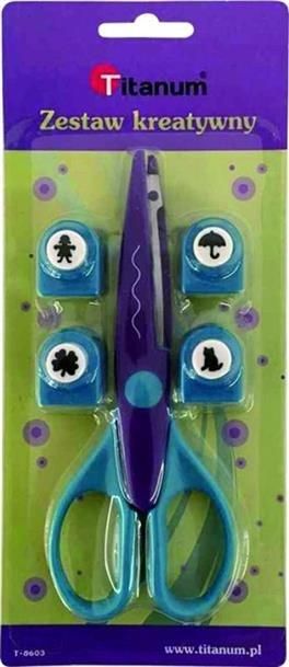 Nożyczki Ozdobne Titanum + 4 Dziurkacze Zestaw Kańczuga
