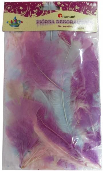 Zestaw piórek w chłodnych kolorach zapakowanych w woreczek. Miękkie, puszyste - nadają się doskonale do tworzenia wszelkiego rodzaju dekoracji i ozdób okazjonalnych. Gratka dla każdego dekoratora od hobbysty do profesjonalisty.▹ opakowania mogą nieznacznie różnić się ilością piórek▹ różne długości od 5 do 13 cm fioletowy,kremowy / ecru,niebieski,Titanum