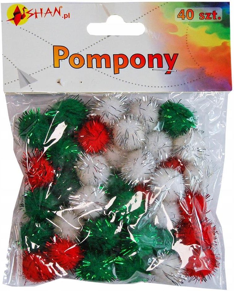 POMPONY KOLOROWE MIX ŚWIĄTECZNY 40 SZT SHAN SP20 Kańczuga