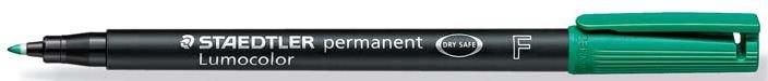 Foliopis permanentny F 318 zielony STAEDTLER LUMOCOLOR S318-5 Foliopis Lumocolor permanent - uniwersalny pisak do pisania na foliach do rzutników i po prawie wszystkich powierzchniach, grubości S i M sluzą do opisywania plyt CD/DVD, - atrament z formulą DRY SAFE moze pozostac bez skuwki przez kilka dni i nie wysycha (Test ISO 554), - obudowa i skuwka wykonane z PP gwarantują wysoką odpornośc na zniszczenie, - nie rozmazuje sie na wiekszości powierzchni, - szybkoschnący, idealny takze dla osób leworecznych, - wodoodporny, praktycznie bezzapachowy atrament, - kolor czarny jest odporny na dzialanie czynników atmosferycznych, - z klipsem, - moze byc uzywany podczas lotu samolotem automatyczne wyrównywanie sie ciśnienia chroni pisaki przed wylewaniem atramentu podczas lotu, - 4 grubości linii, 8 kolorów