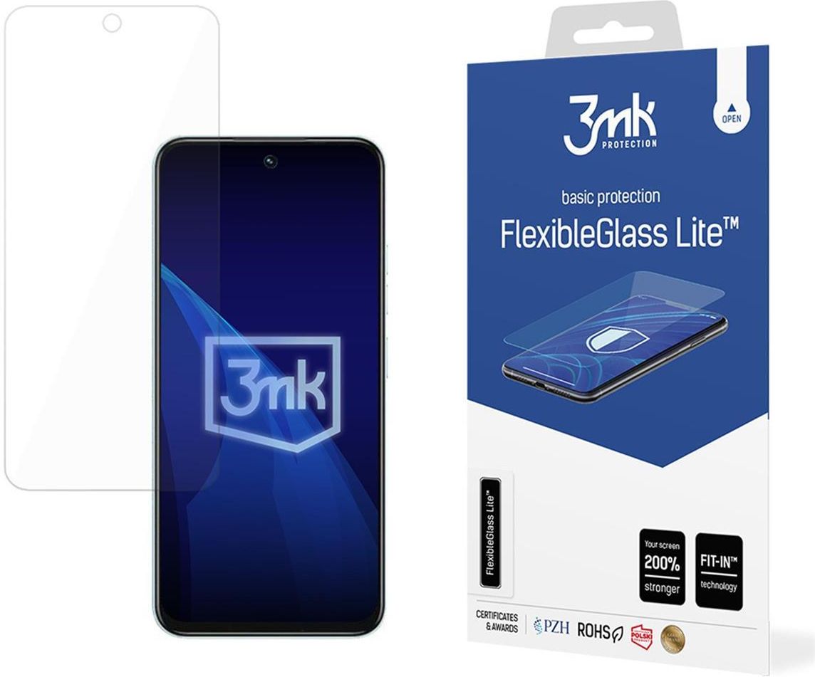 FlexibleGlass Lite- Najcieńsze na rynku szkło hybrydowe Niemal niewyczuwalne – bezkonkurencyjne 0,16 mm grubości Bezpieczne – wzmacnia odporność ekranu nawet do 200% Łatwe w montażu - dzięki naklejkom pozycjonującym Fit-In Ultracienka hybryda FlexibleGlass Lite to niepękające szkło hybrydowe, łączące elastyczność folii ochronnej i twardość tradycyjnego szkła. Stanowi delikatniejszą i tańszą alternatywę dla flagowego produktu 3mk – hybrydy FlexibleGlass. Szkło hybrydowe nie pęka i trudniej je zarysować. Wzmacnia ekran smartfona amortyzując energię uderzenia. Jednocześnie jest praktycznie niewyczuwalne i niewidzialne. Ma zaledwie 0,16 mm grubości. FlexibleGlass Lite to obecnie najcieńsze szkło hybrydowe na rynku. Wzmocnienie wyświetlacza Szkło hybrydowe FlexibleGlass Lite wzmacnia odporność ekranu na uderzenia nawet do 200%. Elastyczna struktura eliminuje ryzyko pękania i kruszenia, zwiększając bezpieczeństwo korzystania z telefonu. Dodatkowa powłoka ceramiczna podnosi wytrzymałość szkła na zarysowania do poziomu 6H. Efekt? Korzystasz dłużej z jednej, dyskretnej ochrony. FlexibleGlass Lite posiada Certyfikat Polski Produkt, atest PZH oraz znak RoHS. Masz pewność, że wybierasz bezpieczną i sprawdzoną ochronę smartfona - o dowiedzionych w testach parametrach i pewnym pochodzeniu. Perfekcyjne dopasowanie Zapomnij o bąbelkach i nieudanych próbach przyklejenia szkła! W zestawie ze szkłem hybrydowym FlexibleGlass Lite znajdziesz naklejki pozycjonujące Fit-In, przy pomocy których szybko i precyzyjnie dopasujesz ochronę do ekranu swojego smartfona. Dzięki laserowej produkcji, szkło zostaje skrojone na miarę wyświetlacza. Posiada wycięcia na głośniki, aparaty i czujniki. Dodatkowym wsparciem w montażu jest instrukcja wideo. FlexibleGlass Lite kupisz w wersach dedykowanych większości modeli smartfonów Apple, Samsung, Huawei, Xiaomi, Oppo, Motorola, Realme oraz innych, popularnych marek.