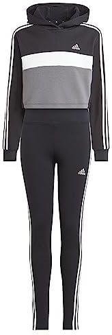 adidas Dziewczynki Tiberio 3-Stripes Colorblock Fleece Leggings Set Kids, black/white/white, 7-8 Years Karczew