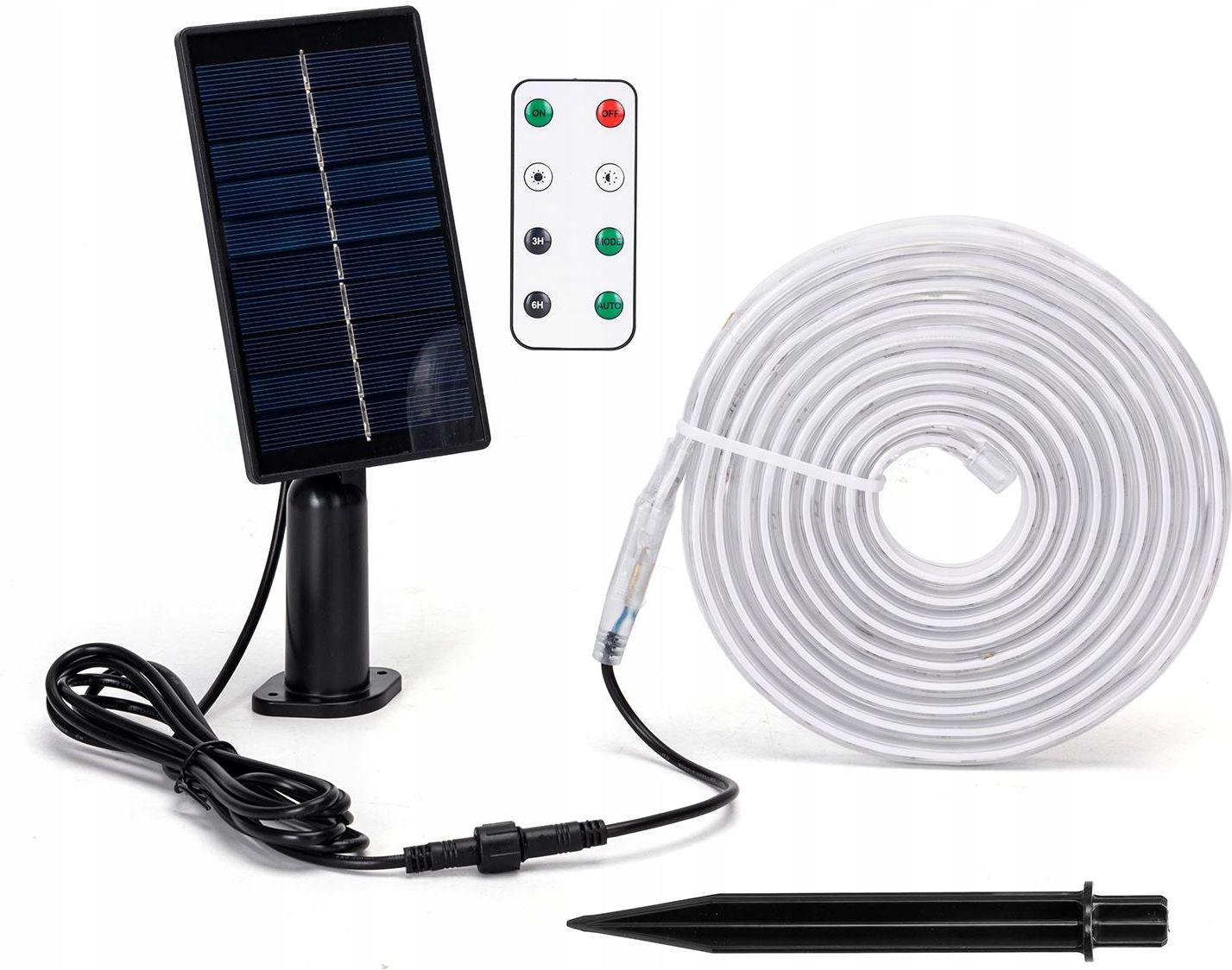 Taśma solarna LED – 3m – 30W – RGB – 300 lm – IP65 Wprowadź do swojego ogrodu, tarasu lub balkonu wyjątkową atmosferę dzięki nowoczesnej taśmie solarnej LED o długości 3 metrów. To energooszczędne, ekologiczne i efektowne rozwiązanie oświetleniowe, które łączy funkcjonalność z dekoracyjnością. Dzięki zasilaniu energią słoneczną taśma nie wymaga żadnych kabli ani dodatkowego źródła prądu – wystarczy światło dzienne! Cechy produktu Długość: 3 metry Moc: 30W Strumień świetlny: 300 lumenów Kolor światła: RGB (pełne spektrum kolorów – możliwość zmiany barwy światła) Stopień ochrony: IP65 (odporność na pył i strumień wody – idealna do użytku zewnętrznego) Zasilanie: Panel solarny z wbudowanym akumulatorem Tryby świecenia: Różne tryby dynamiczne – zmiana koloru, miganie, przejścia Czujnik zmierzchu: Automatyczne włączanie po zmroku i wyłączanie o świcie Czas świecenia: Do 8–10 godzin po pełnym naładowaniu Czas ładowania: 6–8 godzin w pełnym słońcu Montaż: Samoprzylepna taśma z możliwością mocowania do różnych powierzchni + uchwyty montażowe w zestawie Zastosowanie Oświetlenie dekoracyjne ogrodów, tarasów, balkonów Podświetlenie ścieżek, altan, pergoli Ozdoba na przyjęcia, wesela, imprezy plenerowe Sezonowe dekoracje świąteczne Zalety Bezprzewodowa instalacja – brak konieczności podłączenia do sieci elektrycznej✅ Energooszczędność – wykorzystanie odnawialnej energii słonecznej✅ Wielokolorowe oświetlenie – idealne do tworzenia klimatycznego nastroju✅ Odporność na warunki atmosferyczne – trwałość i niezawodność przez cały rok✅ Łatwa instalacja i obsługa – intuicyjna obsługa i montaż w kilka minut Zawartość zestawu Taśma LED 3m RGB Panel solarny z akumulatorem Uchwyt do montażu panelu Pilot zdalnego sterowania (opcjonalnie – jeśli w zestawie) Instrukcja obsługi