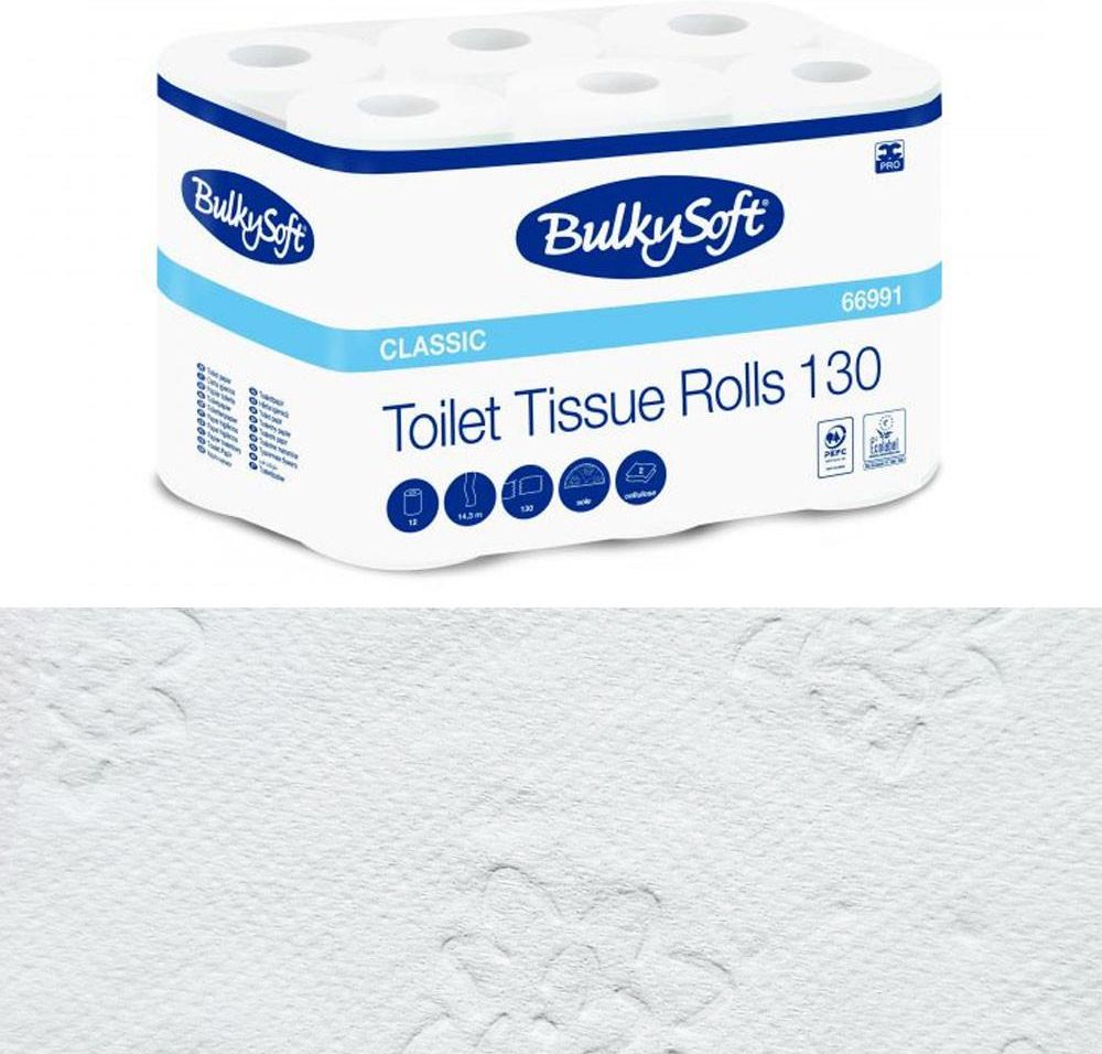 Numer artykułu: 66991BULKYSOFT papier toaletowyKolor: BiałySurowiec: CelulozaIlość warstw: 2Ilość listków: 130Długość rolki: 14,3mIlość rolek w opakowaniu: 12 rolekSprzedaż min.: 1op/12rolekBulkysoft Classic to papier toaletowy w konwencjonalnych rolkach, który jest idealnym produktem do codziennego stosowania dla osób oczekujących dobrej jakości, higieny i ekonomiczności. Papier o białym kolorze, który cechuje dwuwarstwowa budowa. Wykonany z czystej, selekcjonowanej celulozy, co zapewnia wyjątkową miękkość, wytrzymałość i przyjemność użytkowania. Bardzo chłonny. Jedna rolka zawiera w sobie 130 odcinków papieru toaletowego. Papier Bulkysoft Classic stanowi idealne rozwiązanie dla hoteli, w których konieczna jest wymiana rolek każdego dnia. Polecany także i dla innych odbiorców: barów, kawiarni itp.
