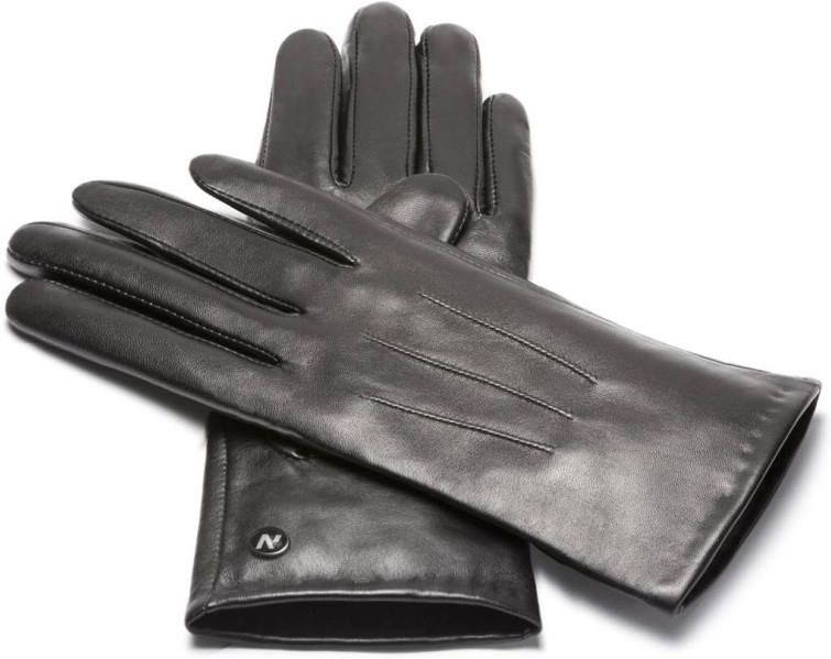Czarne rękawiczki damskie ze skóry naturalnej Karczew