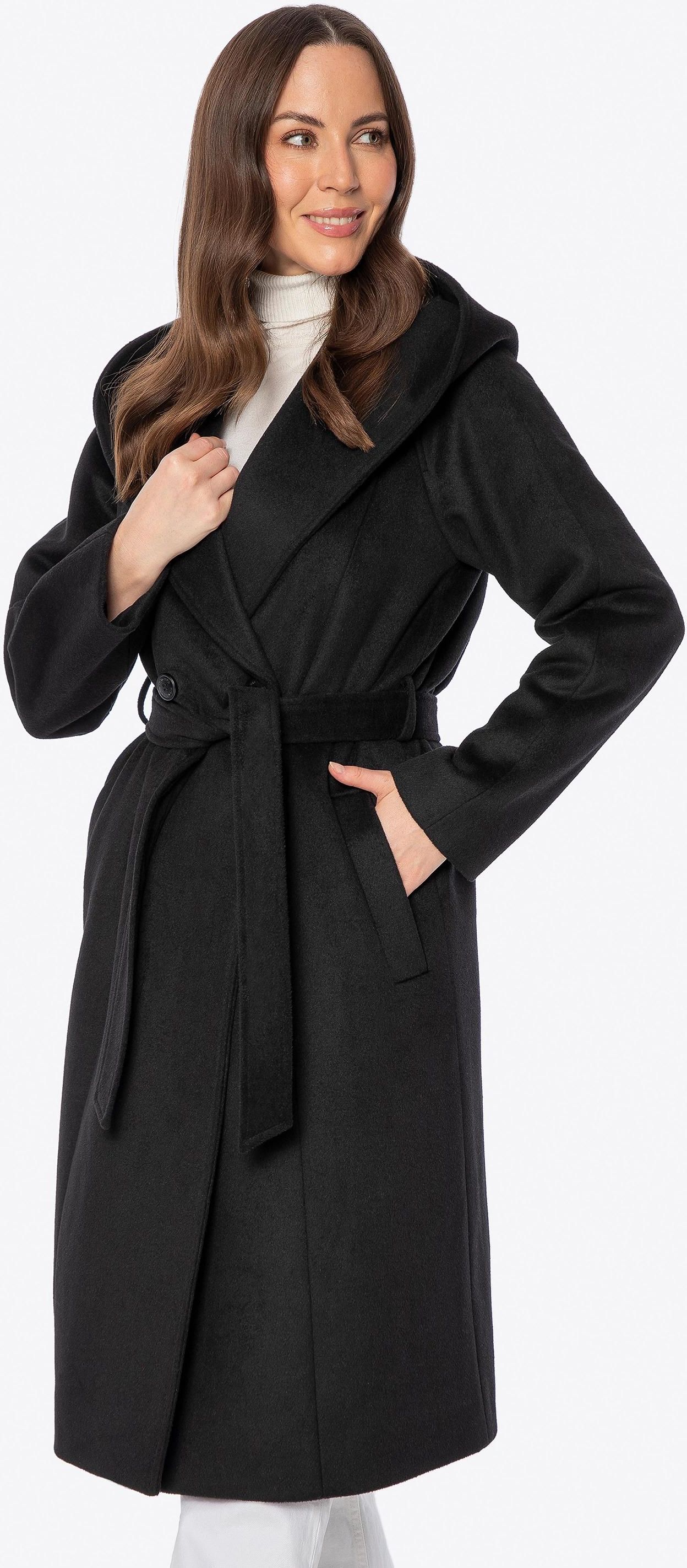 Damski płaszcz dwurzędowy z wełną czarny Karczew
