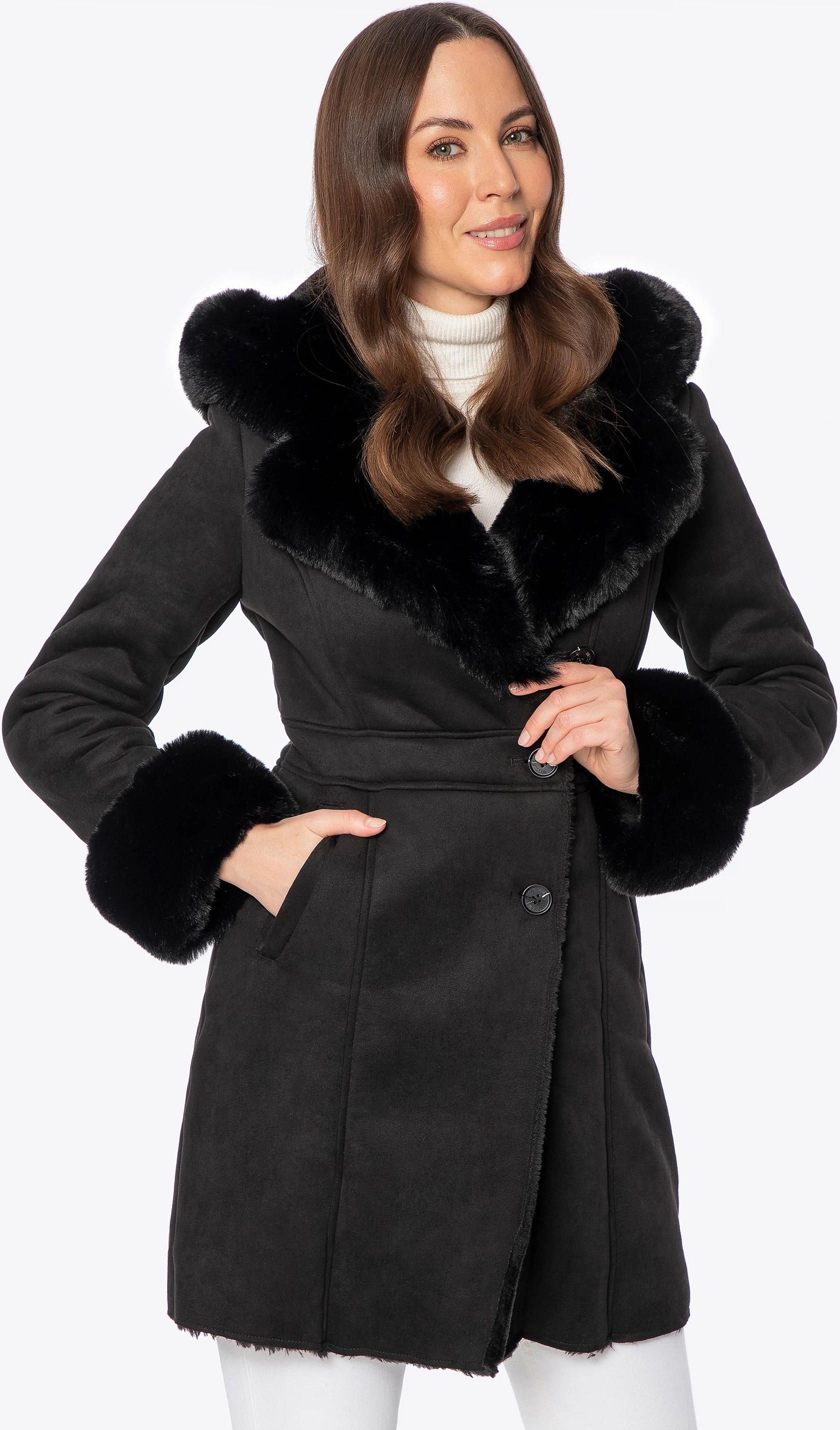 Damski płaszcz - futerko z kapturem czarny Karczew